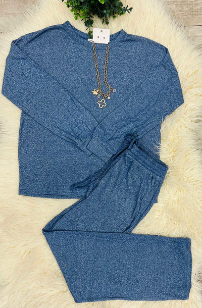 Zenana Melange Super Soft Lounge Set Dark Navy