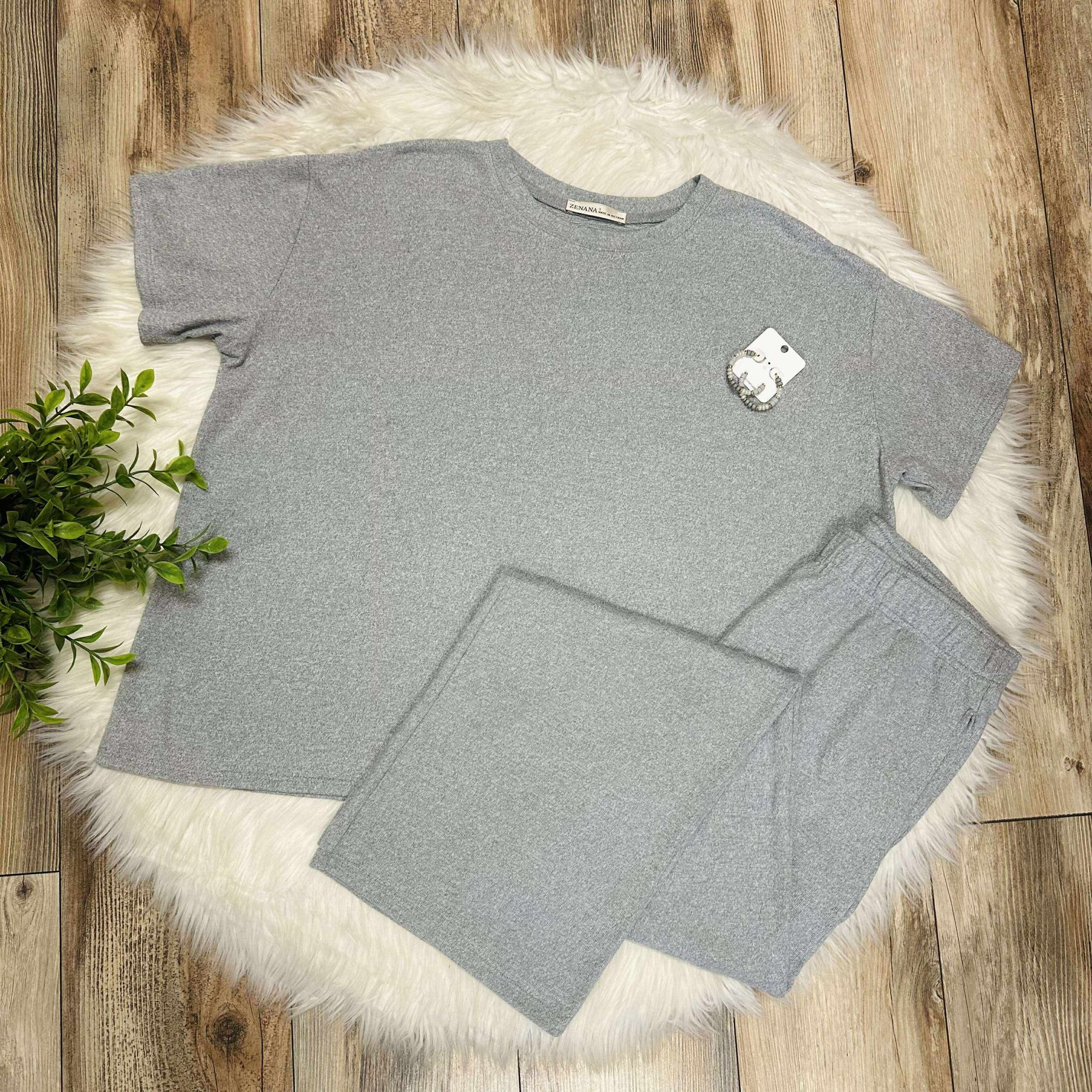 Women’s Soft Melange Short Sleeve Soft Set Grey