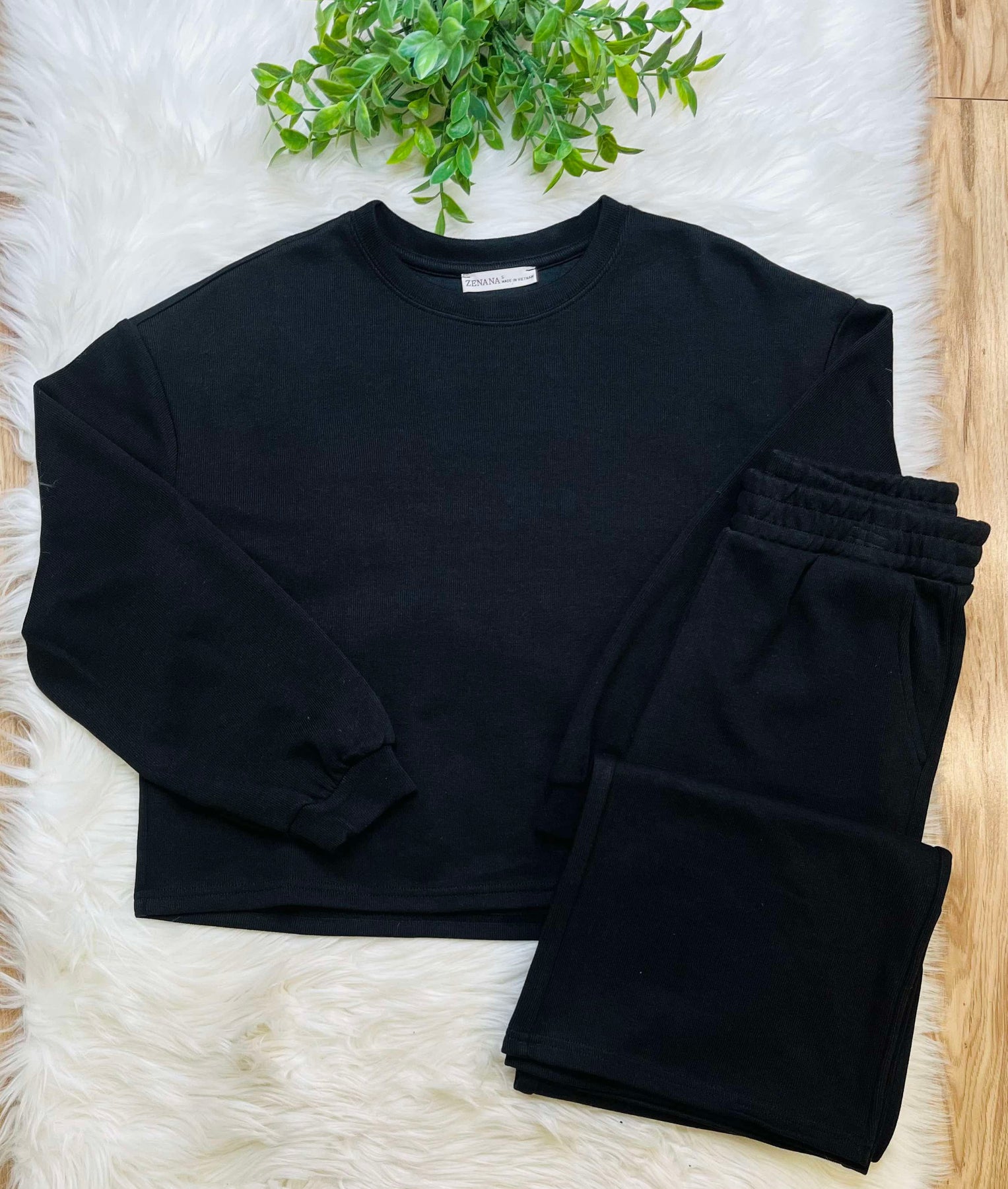 Zenana French Ribbed Pants Set Black