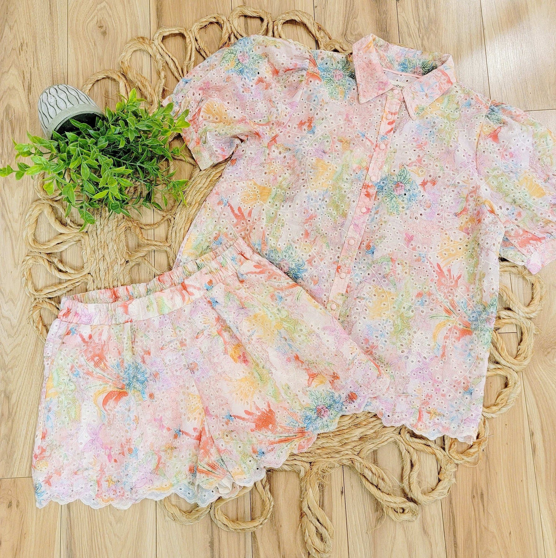 This Women's Pink Set features a beautiful floral design that adds a touch of femininity to any outfit. Made with a lovely shade of pink, this set is perfect for any occasion and is sure to make a statement. With its unique design and color, it's a must-have for any fashion-forward woman.