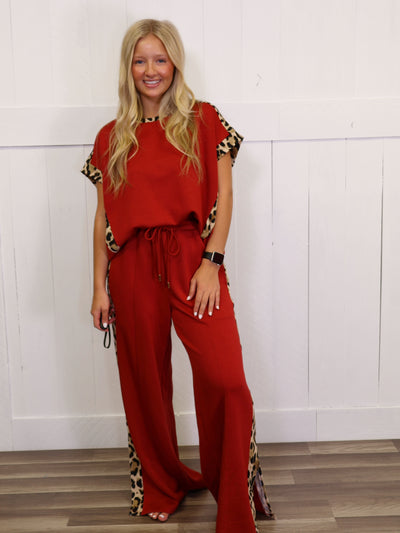 Jodifl Taupe Cheetah Contrast Stripe Set Top and Botton