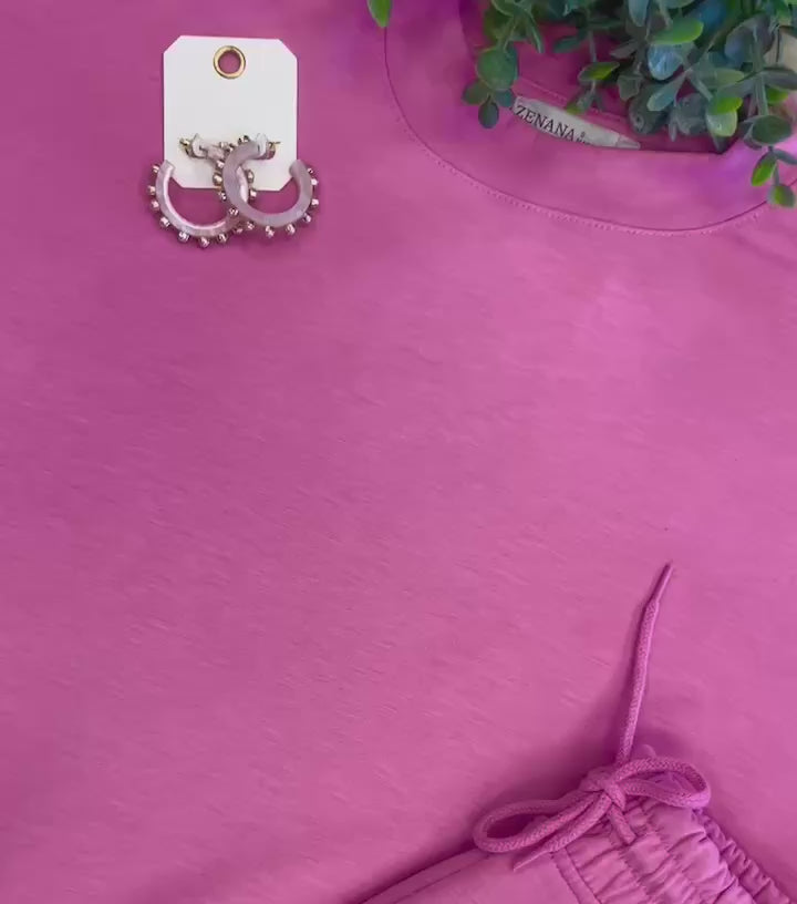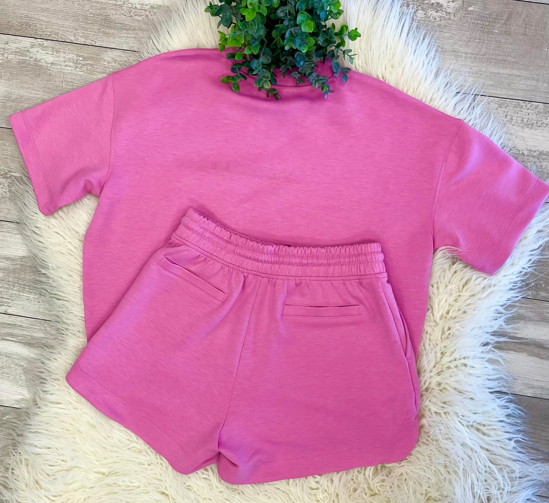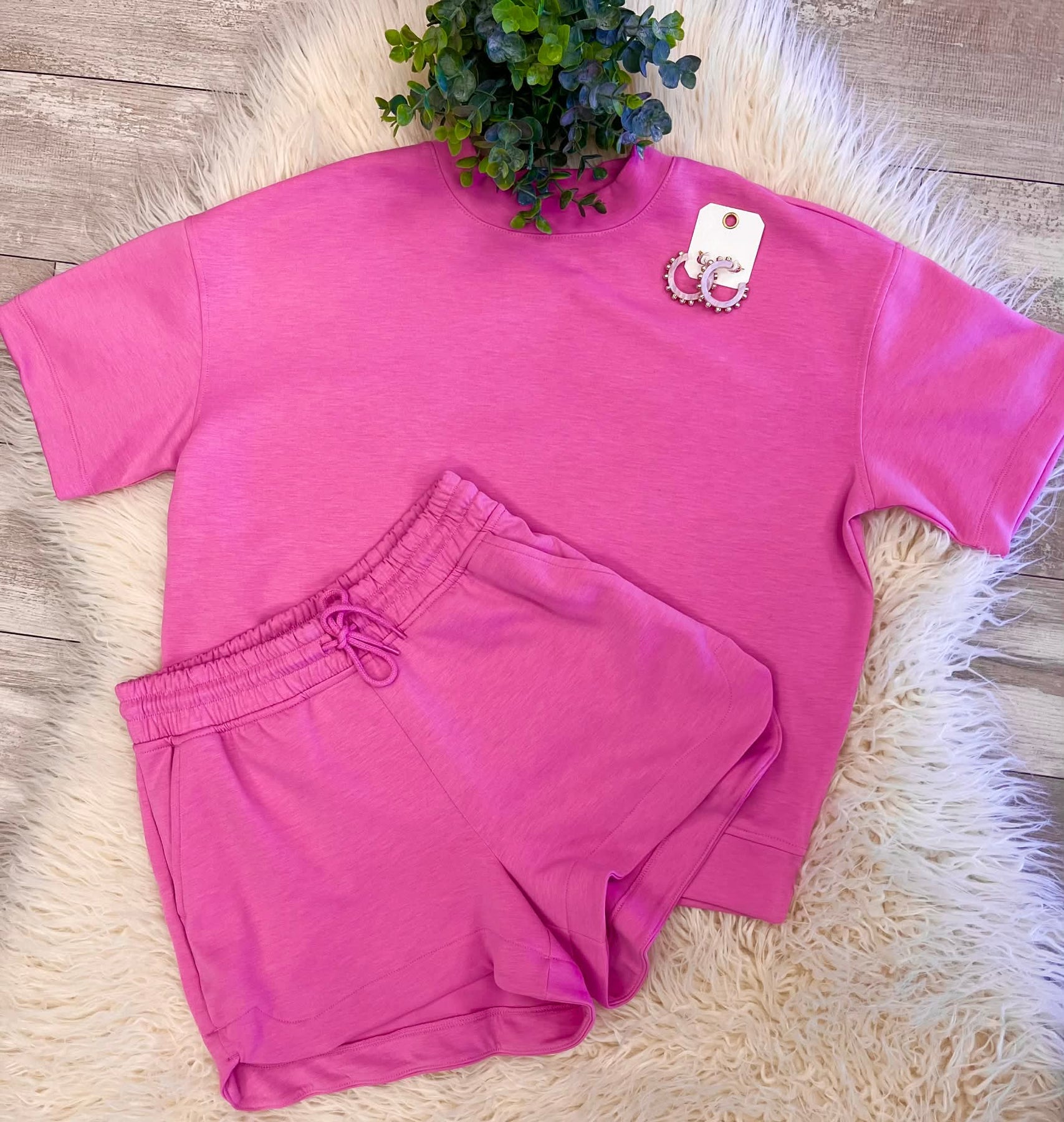 The Women’s Scuba Mock Neck Drawstring Short Set is designed for comfort and versatility. This set, featuring a mock neck and adjustable drawstring shorts, provides a tailored fit. The breathable fabric composition allows for ease of movement, making it suitable for various activities or casual outings.