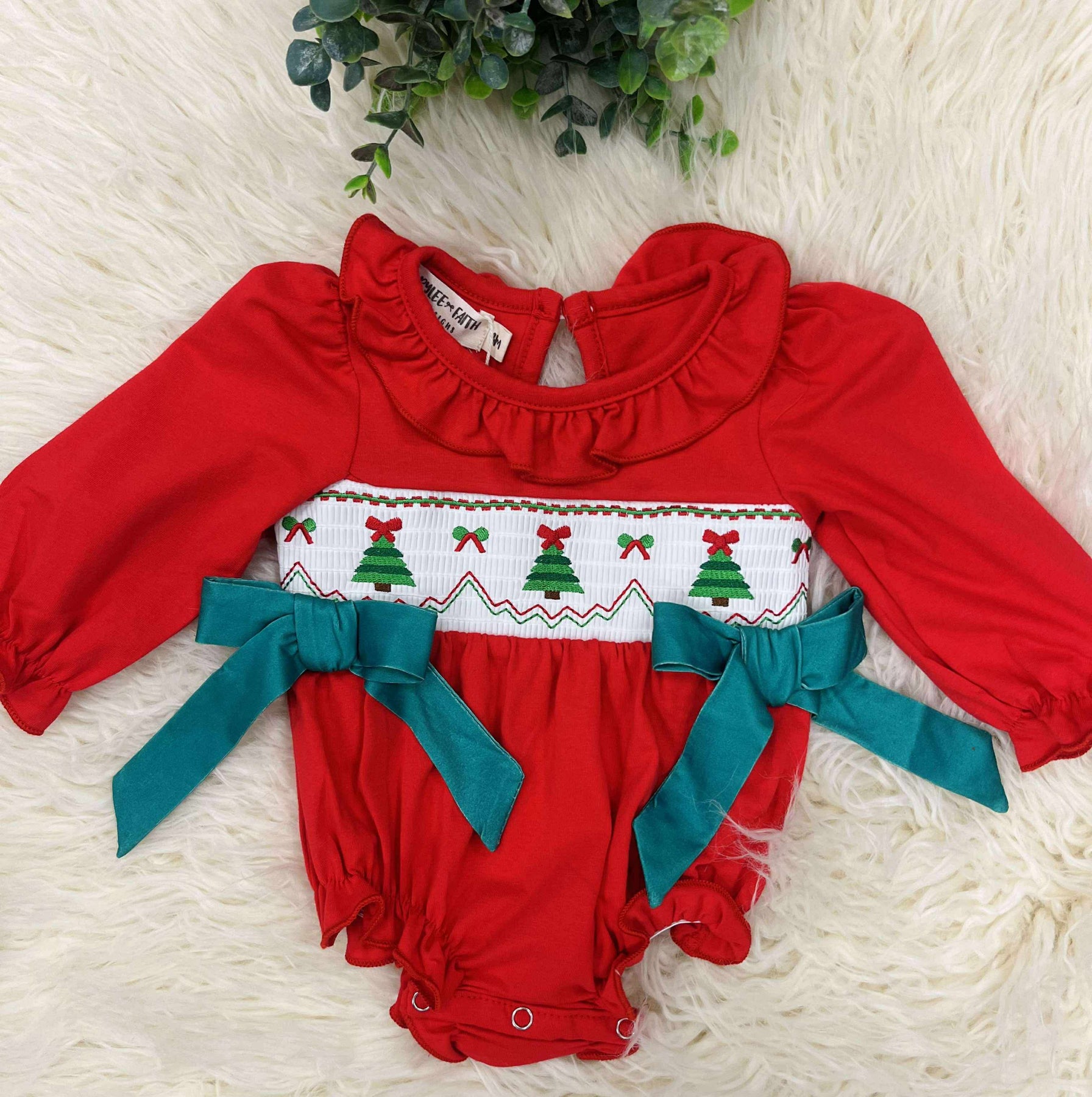 This smocked romper is perfect for the holiday season! Made with soft and durable fabric, it features a charming Christmas character design that your little girl will love. The romper provides both comfort and style, making it a must-have for your child's wardrobe.