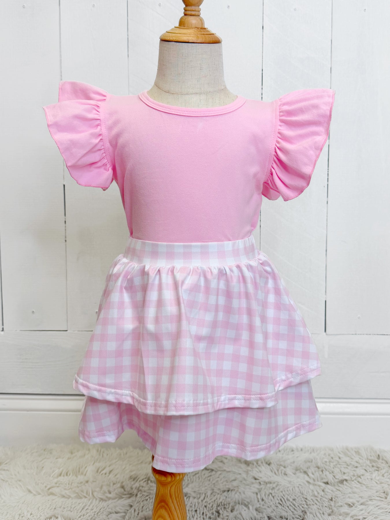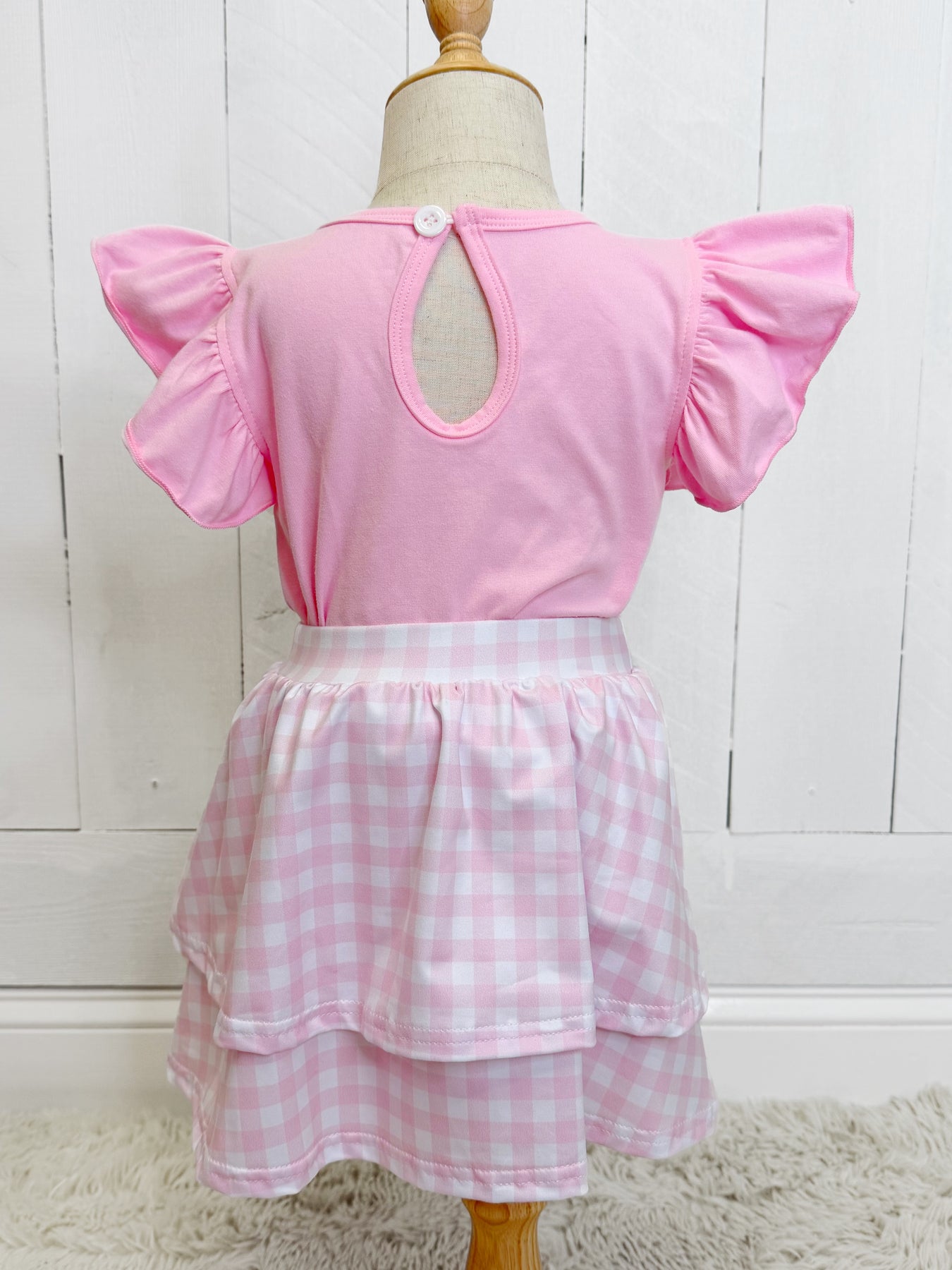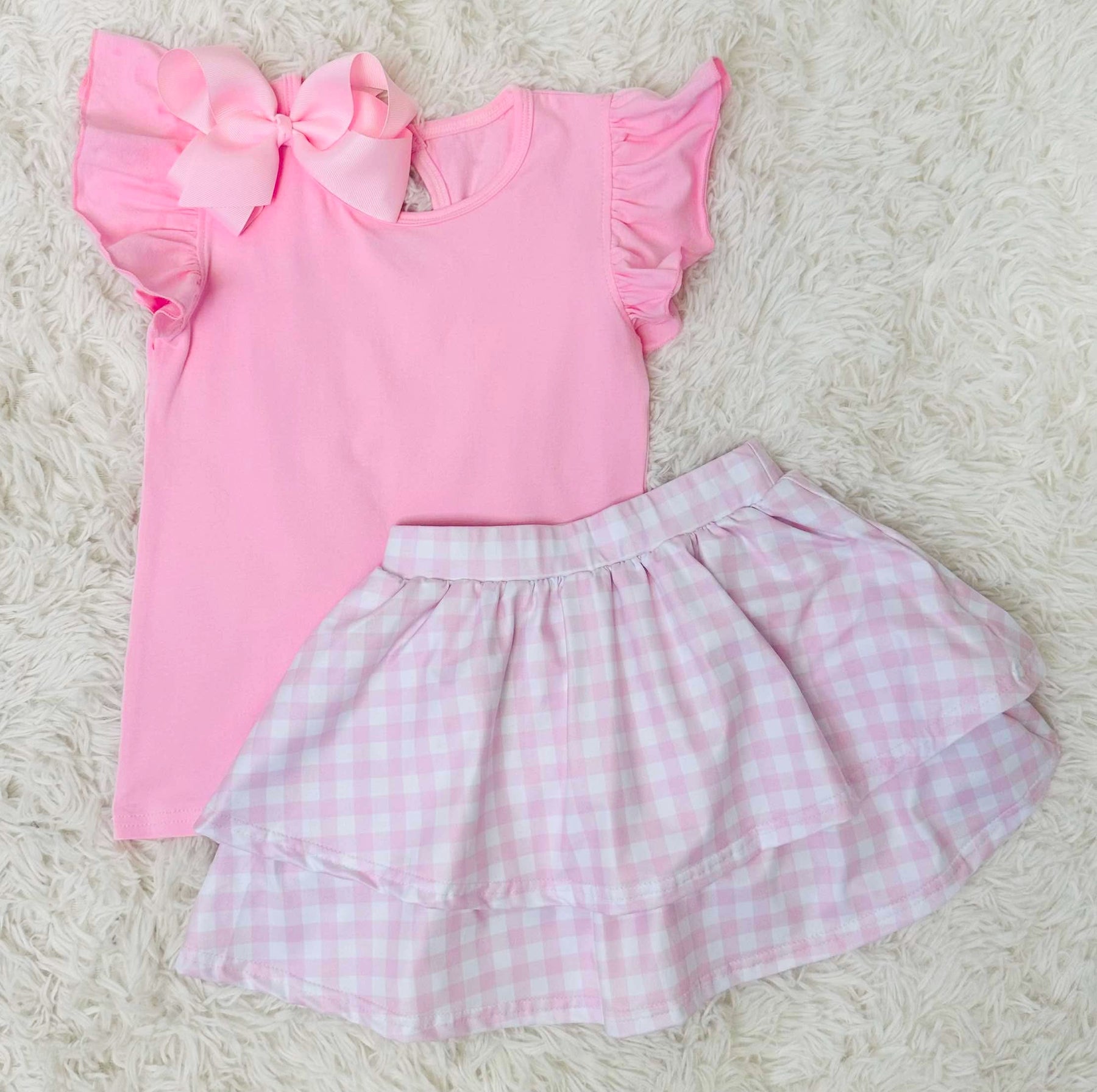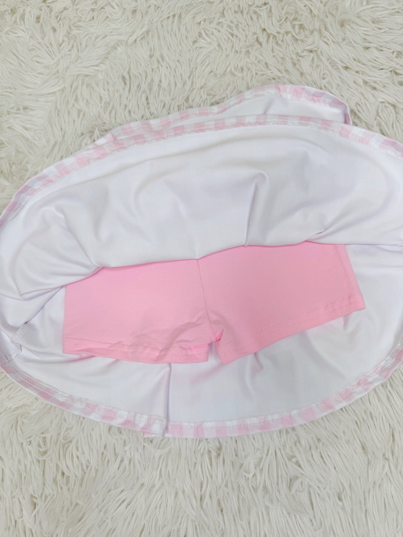 This Pink Plaid Active Skort Set is perfect for active girls. Made with high-quality material, the skort provides comfort and mobility while playing sports or simply running around. The stylish pink plaid design adds a touch of fun to this practical, versatile set.