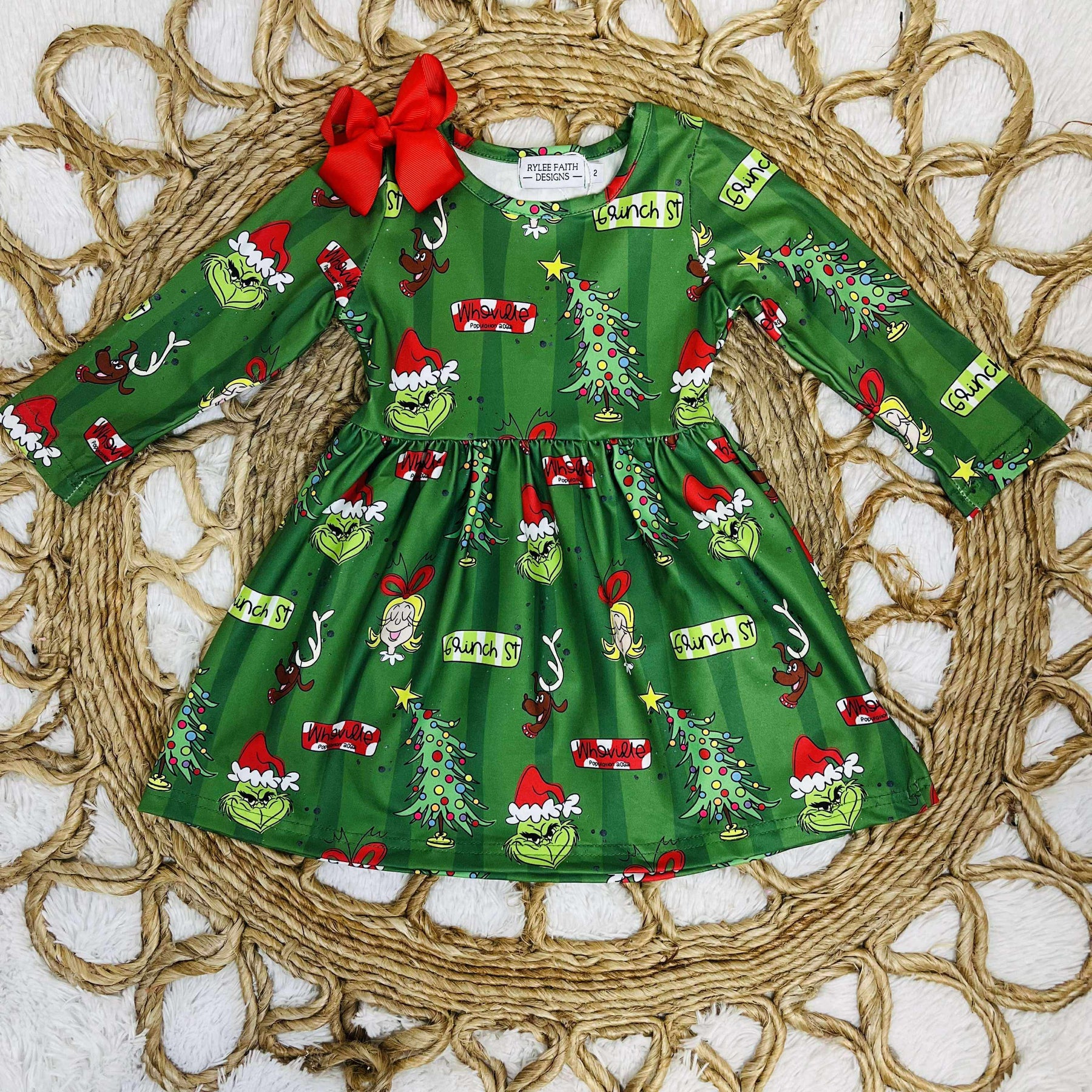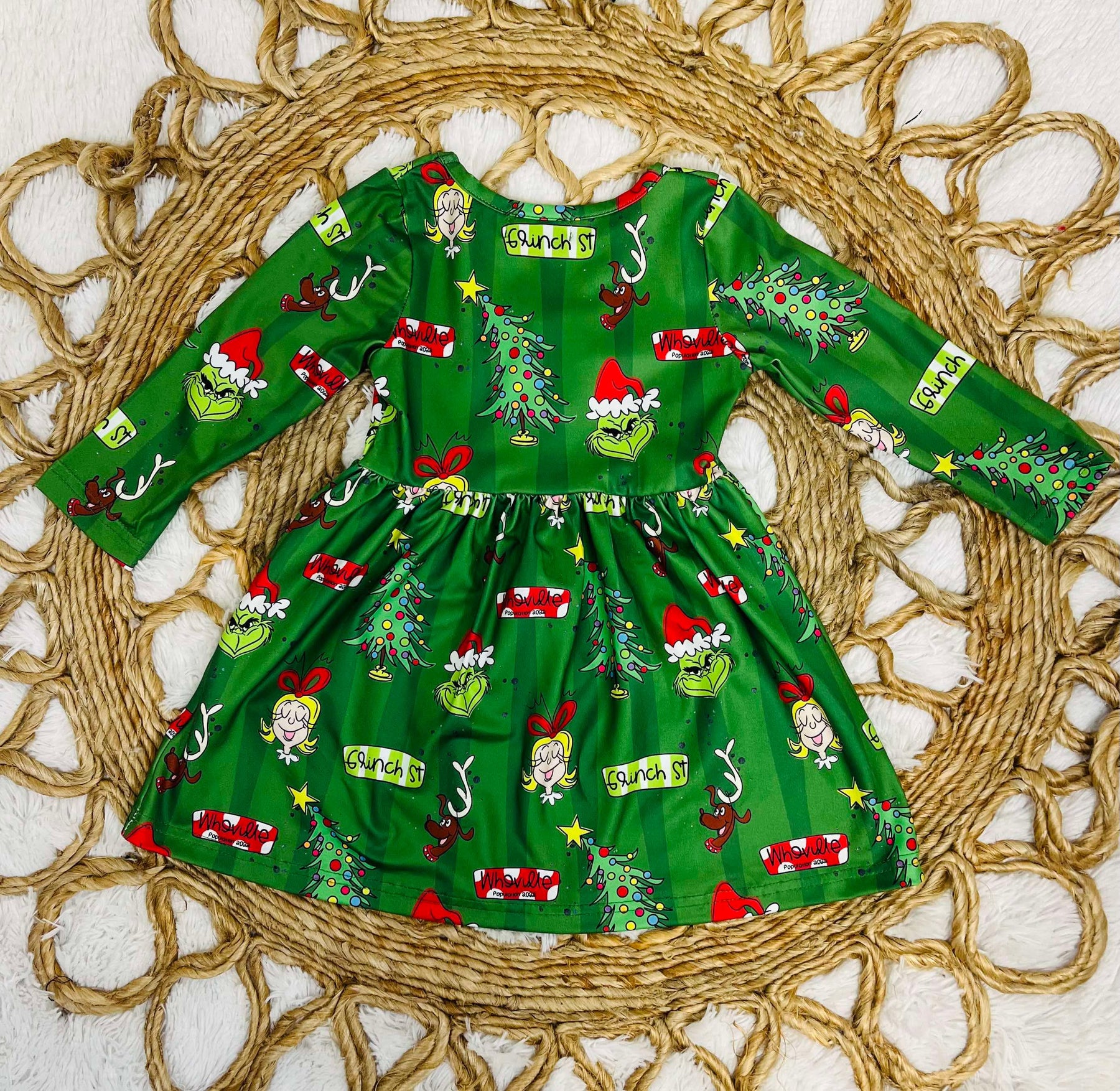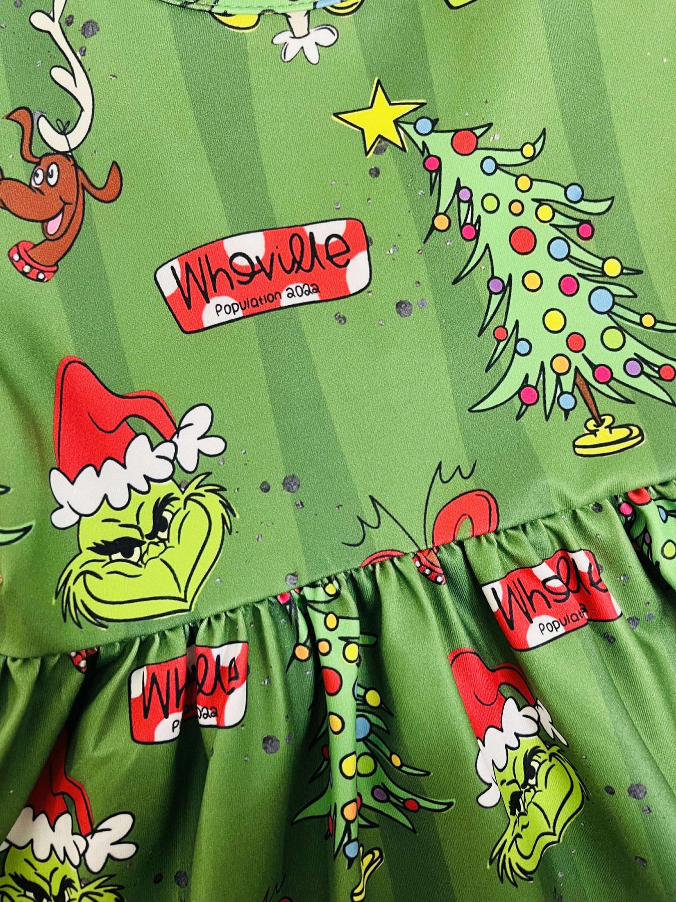 Get ready for the holiday season with our Girls Grinch Christmas Print Dress. Featuring a festive Grinchmas print, this dress is perfect for spreading holiday cheer. Made from high-quality materials, it's comfortable and stylish. Bring a touch of whimsy to your little one's wardrobe with this fun and unique dress.