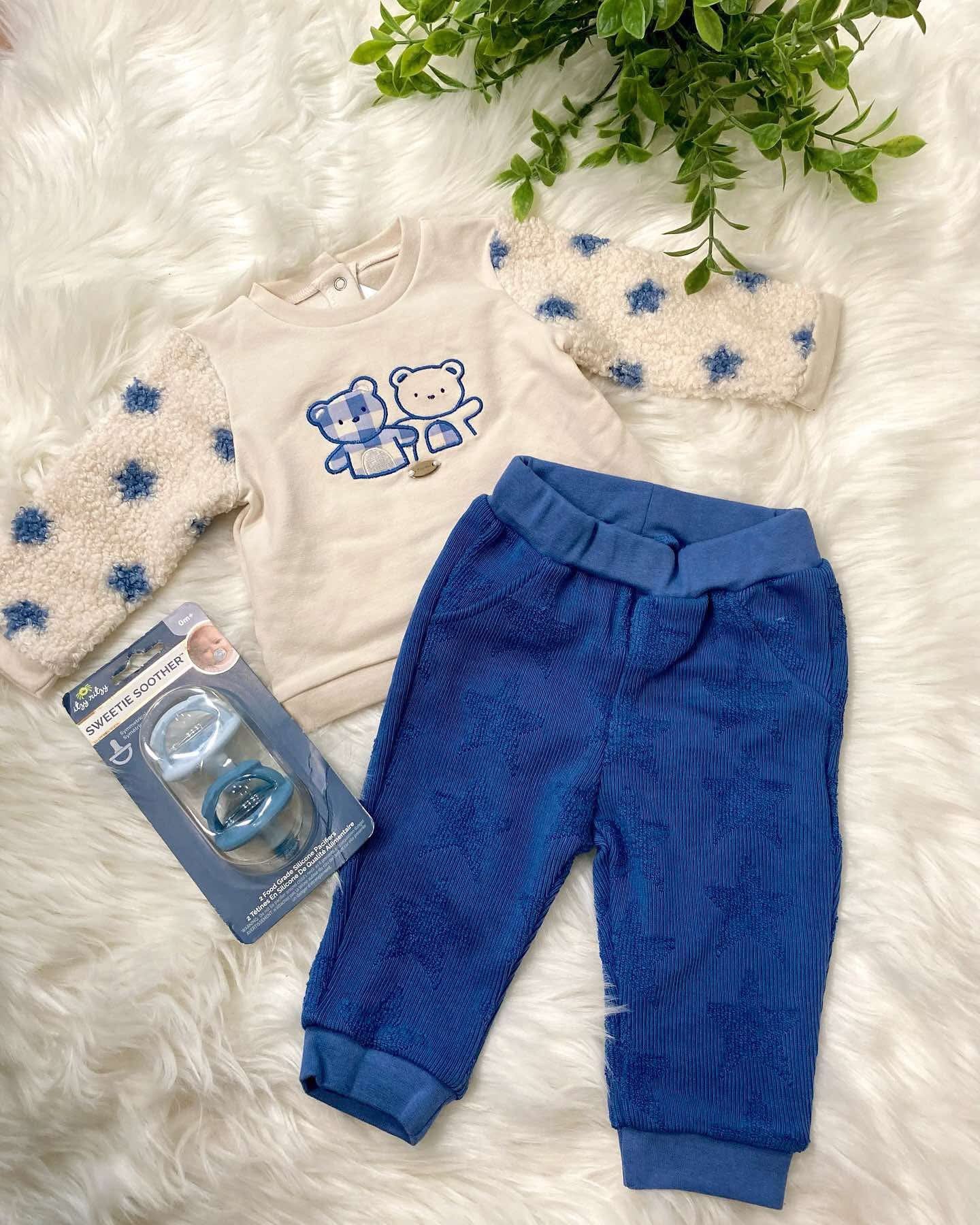 Get your little boy dressed in style with the Boy's Blue Bears 2 Piece Set. This adorable matching set features a comfortable fabric that keeps your little one cozy all day long. Perfect for your little guy!