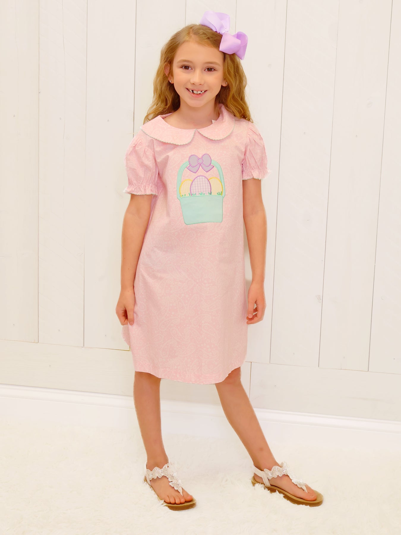 Dress your little girl in style with our Girls Easter Basket Dress. Perfect for the Easter holiday, this dress is not only cute but also comfortable. Made with the highest quality materials, your little one will love twirling and playing in this dress all day long. Get ready for some adorable Easter photos!