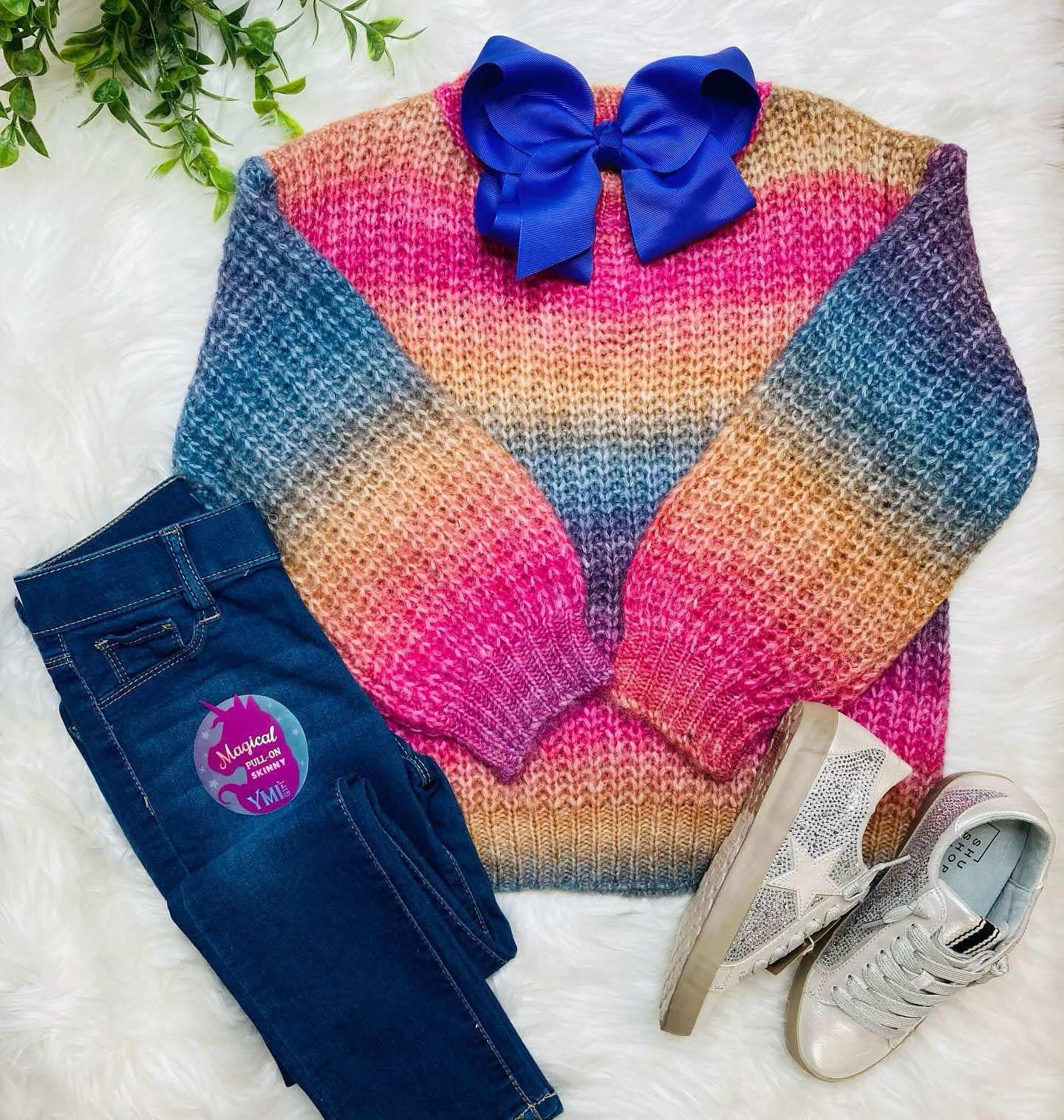 Stay cozy and fashionable with our girls' multicolor sweater. Vibrant colors, soft material, and a stylish design make this a must-have addition to any young fashionista's wardrobe.