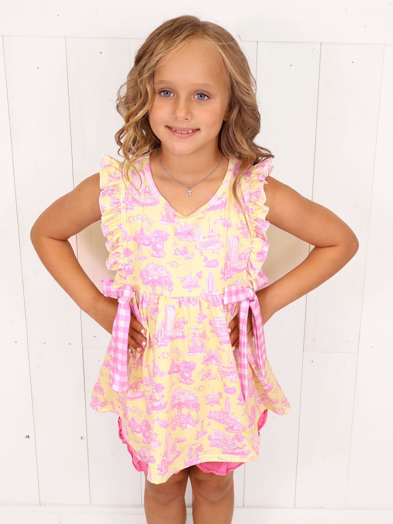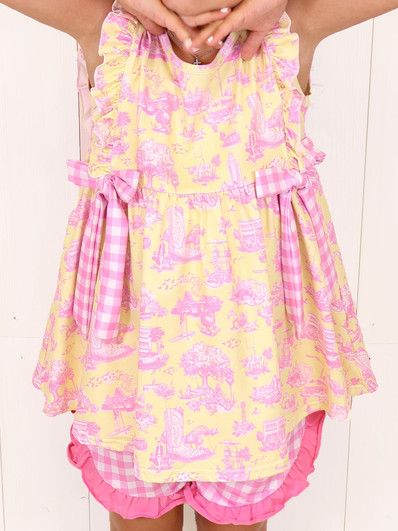 Enhance your little girl's wardrobe with our Yellow and Pink Plaid Short Set. Made with a stylish pink and yellow plaid design, this set is perfect for any occasion. The soft fabric ensures comfort and the vibrant colors add a pop of fun to any outfit.