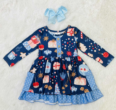 Girls Blue Christmas Dress