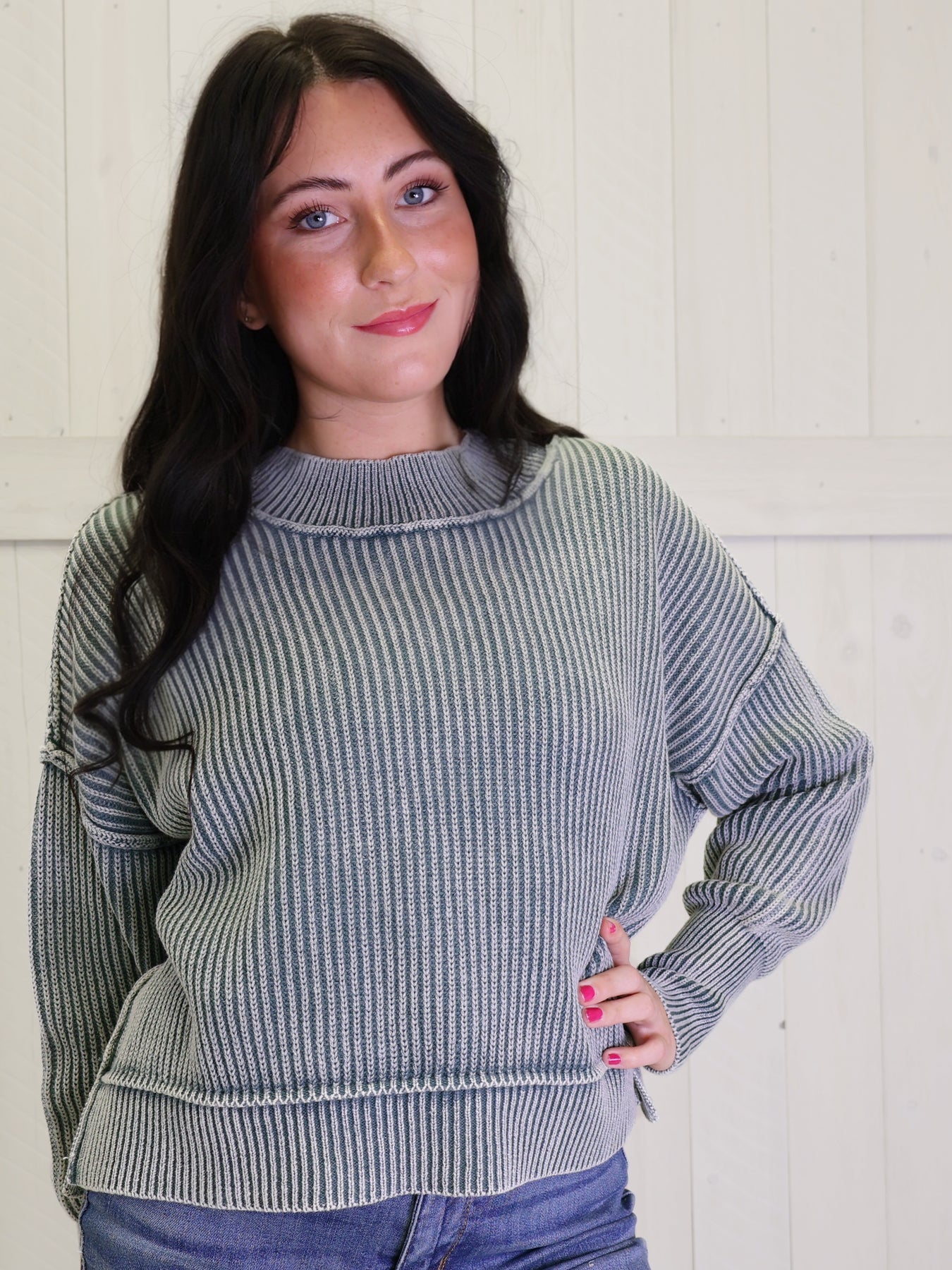 Ash Jade Washed Side Slit Oversized Cropped Sweater Pullover Top