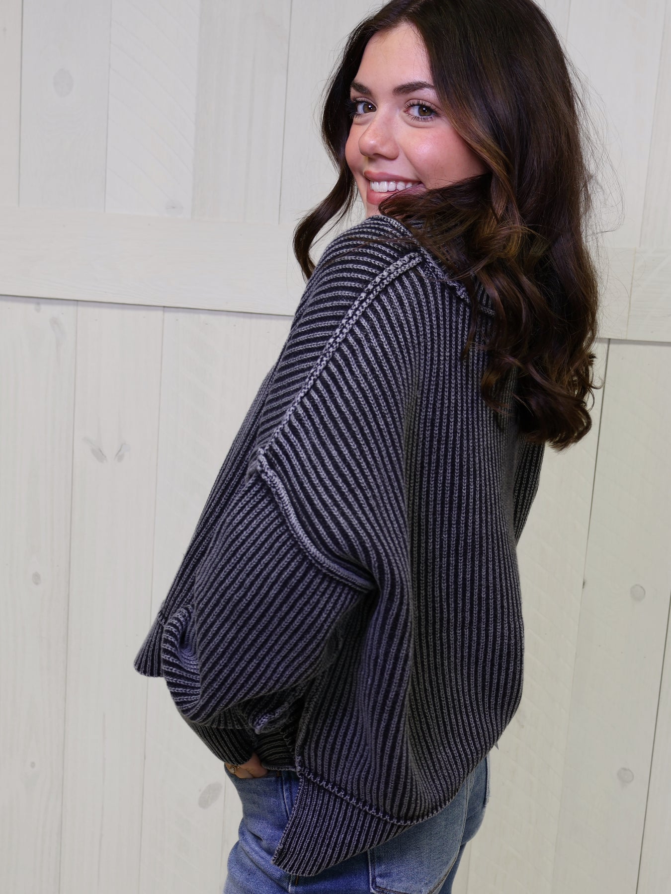 Expertly crafted for a comfortable and stylish fit, our Washed Side Slit Oversized Cropped Sweater is a must-have addition to your wardrobe. Featuring an oversized design, this sweater provides a cozy and relaxed look, perfect for both casual and dressy occasions. Elevate your style with this versatile piece.