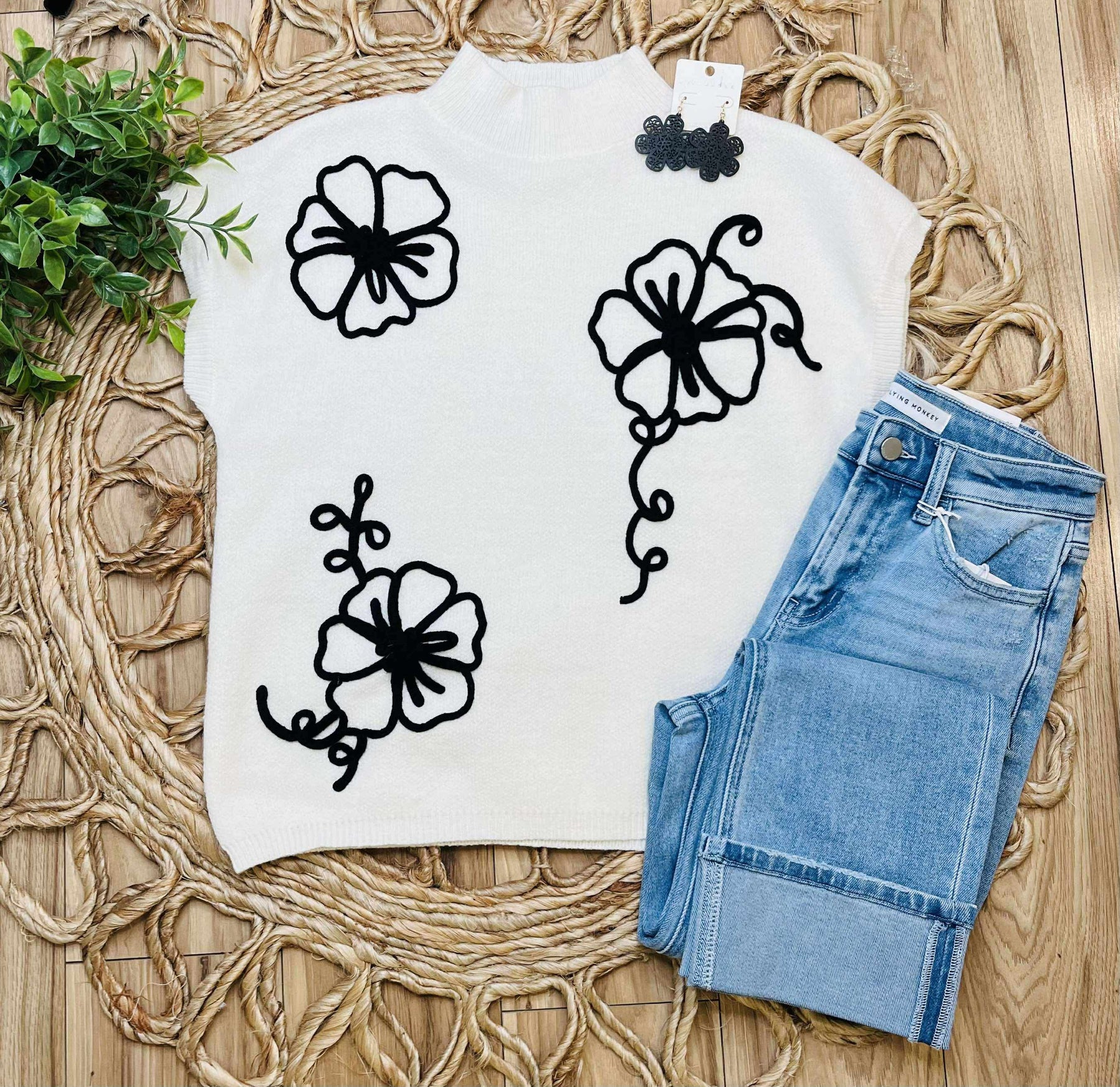 Experience ultimate comfort and style with our Mock Neck Floral Trim Sweater. Made with a soft and cozy material, this sweater is perfect for cooler days. The mock neck design adds a touch of sophistication, while the floral trim detail adds a feminine touch. Stay warm and chic with this must-have wardrobe staple.
