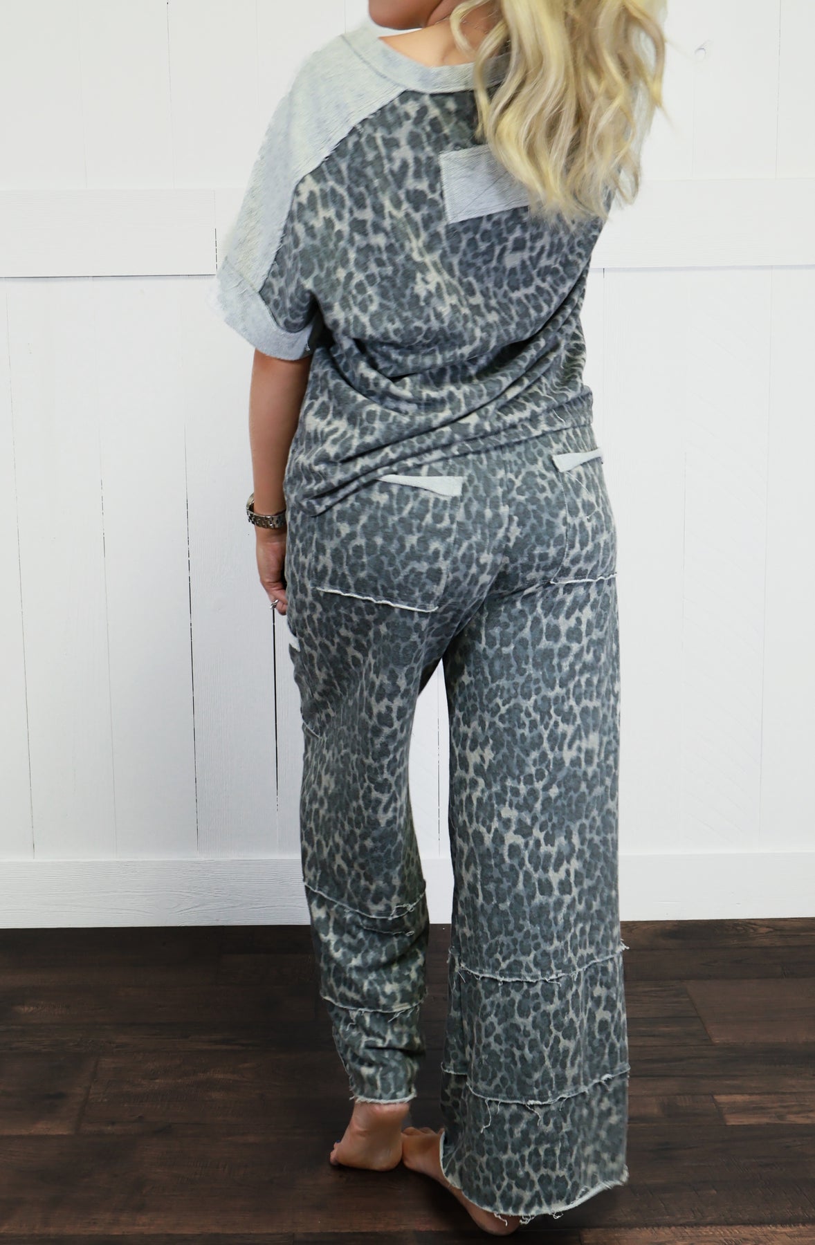 Update your wardrobe with the J.Her Ash Grey Cheetah Pant Set. This stylish set includes a top and pants, perfect for creating multiple versatile looks. Made with high-quality fabric, this set offers both comfort and style for any occasion. Upgrade your fashion game with this must-have set.