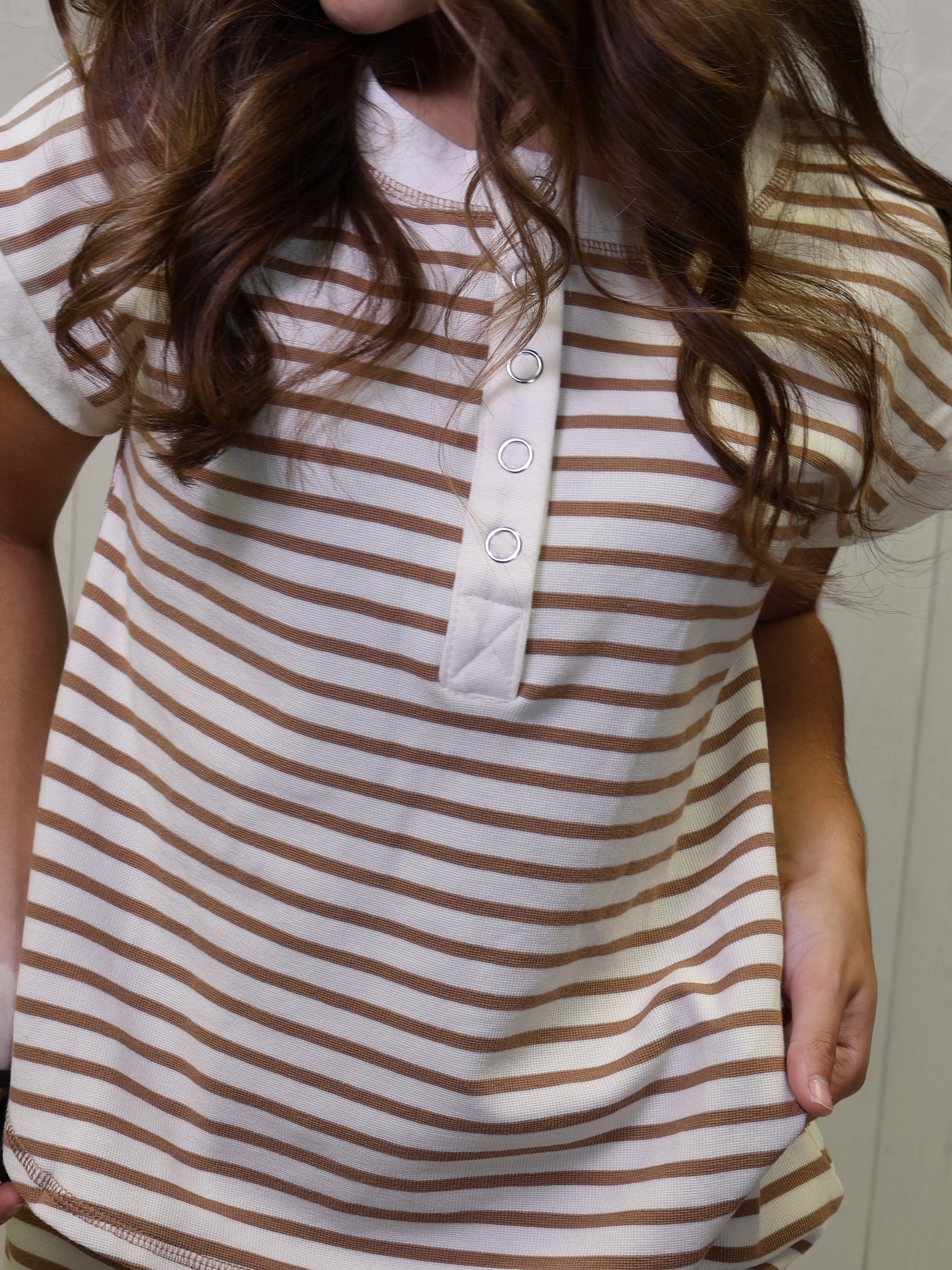 This Natural Stripe Button Top Short Set is a must-have for any summer wardrobe. The stylish stripe design adds a touch of sophistication, while the comfortable fit ensures all-day wearability. Made with high-quality materials, this set is both durable and stylish, making it perfect for any occasion.