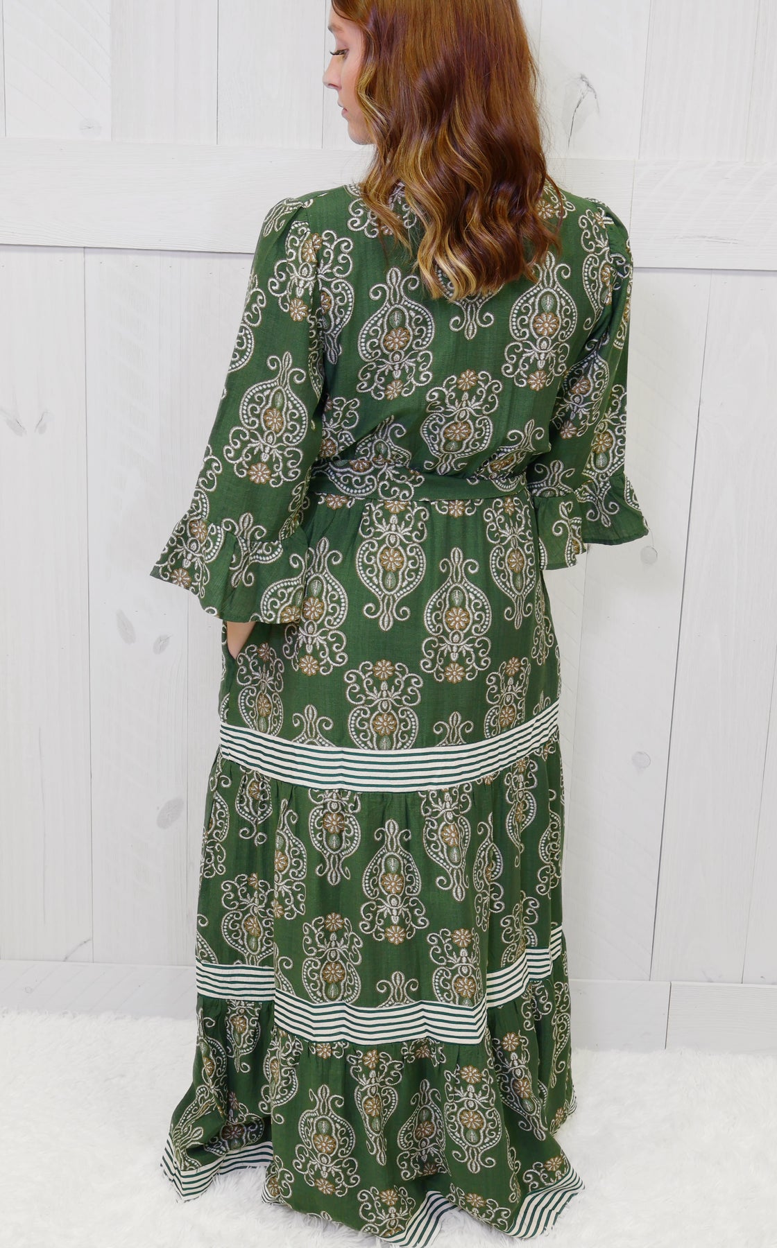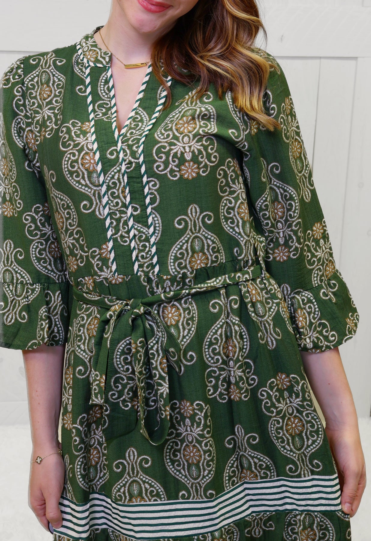 This sleek Olive V Neck Belted Maxi Dress is the perfect addition to any wardrobe. This dress features a flattering v neckline and belted waist, adding a touch of elegance to your look. Its maxi length creates a versatile style that can be dressed up or down, making it a must-have for any occasion.