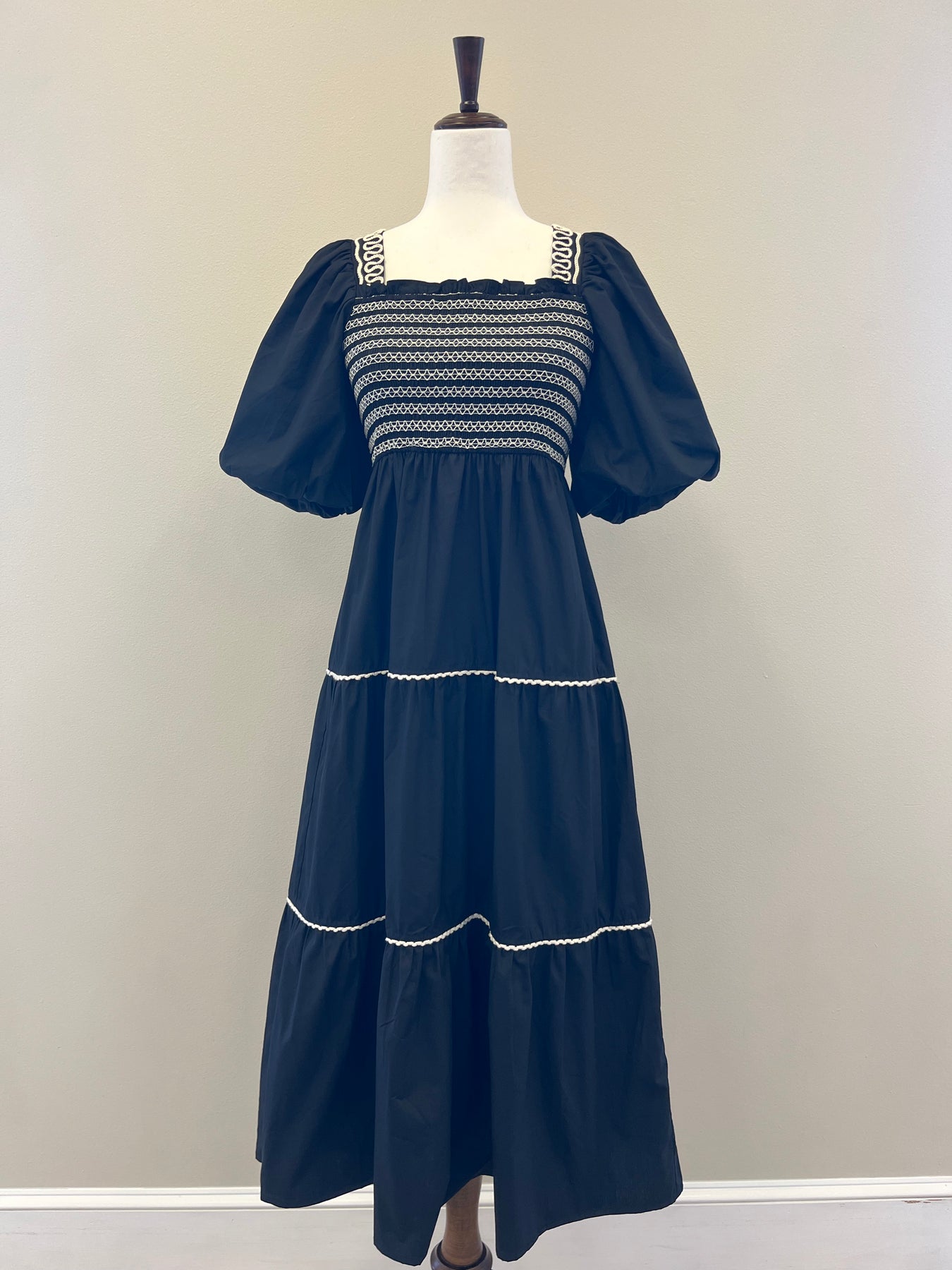 Expertly crafted with a versatile midi length, the Peach Love Dark Navy Midi Dress is sure to elevate any look. The elegant, white details add a touch of sophistication, perfect for any occasion. Made from high-quality materials, this dress exudes both style and comfort.