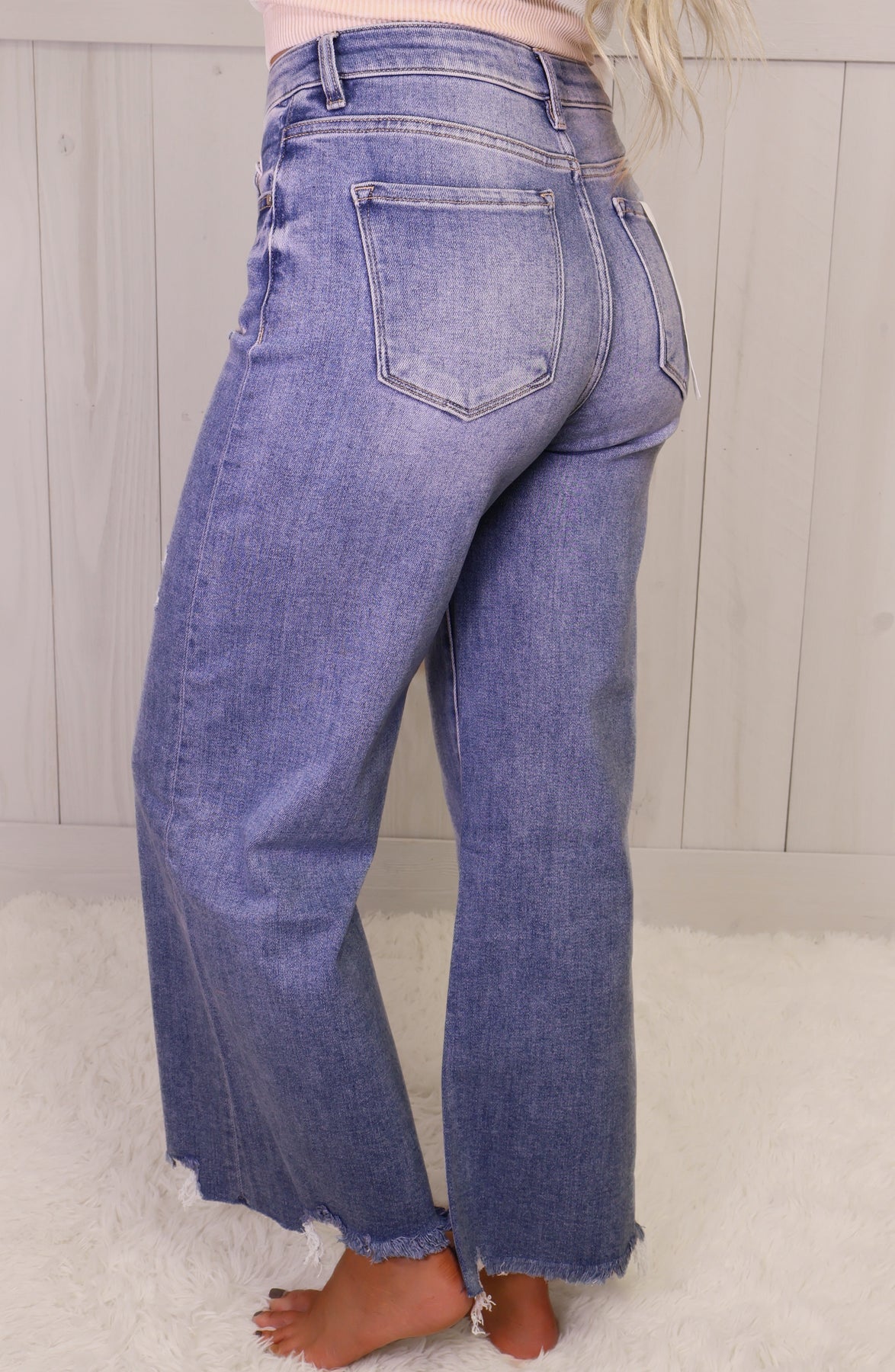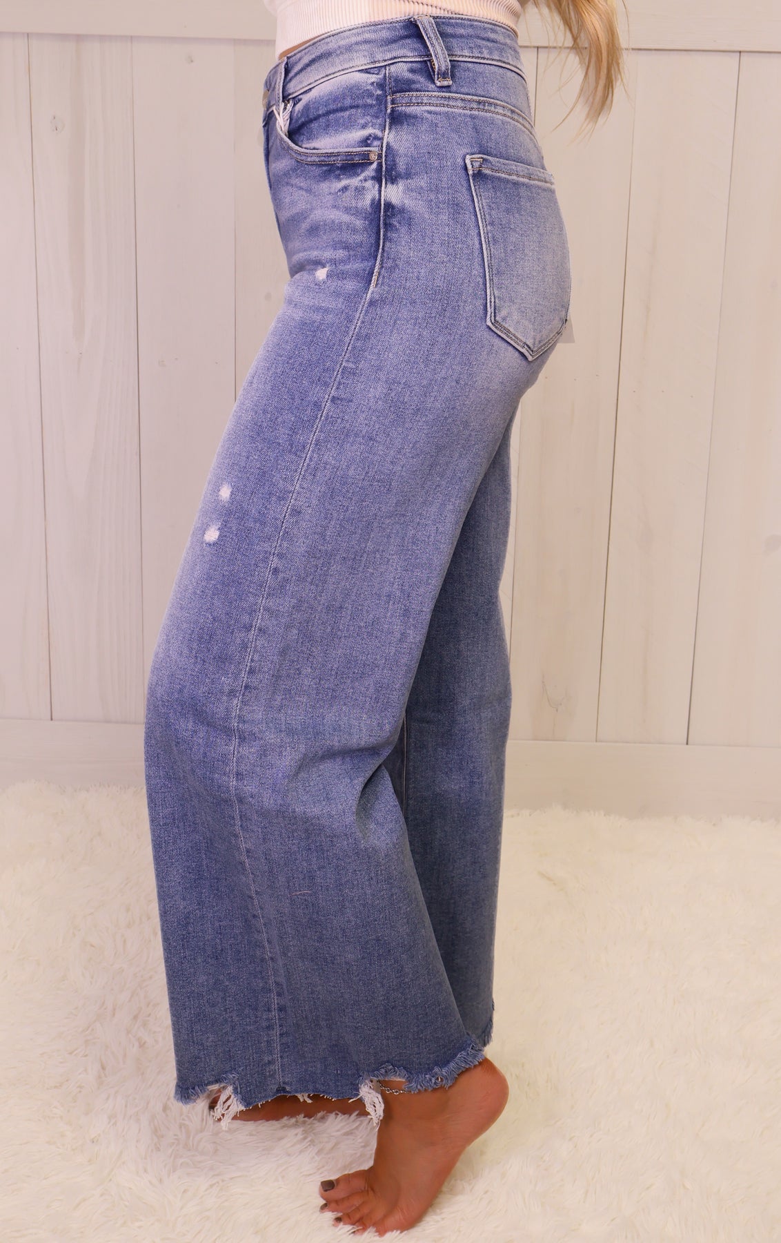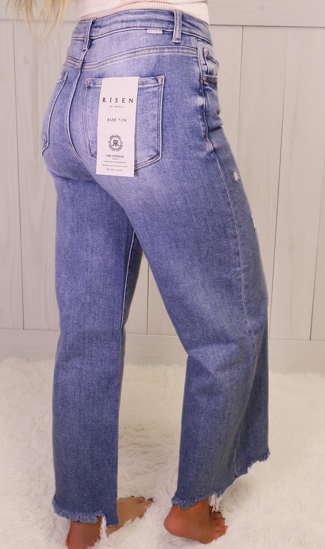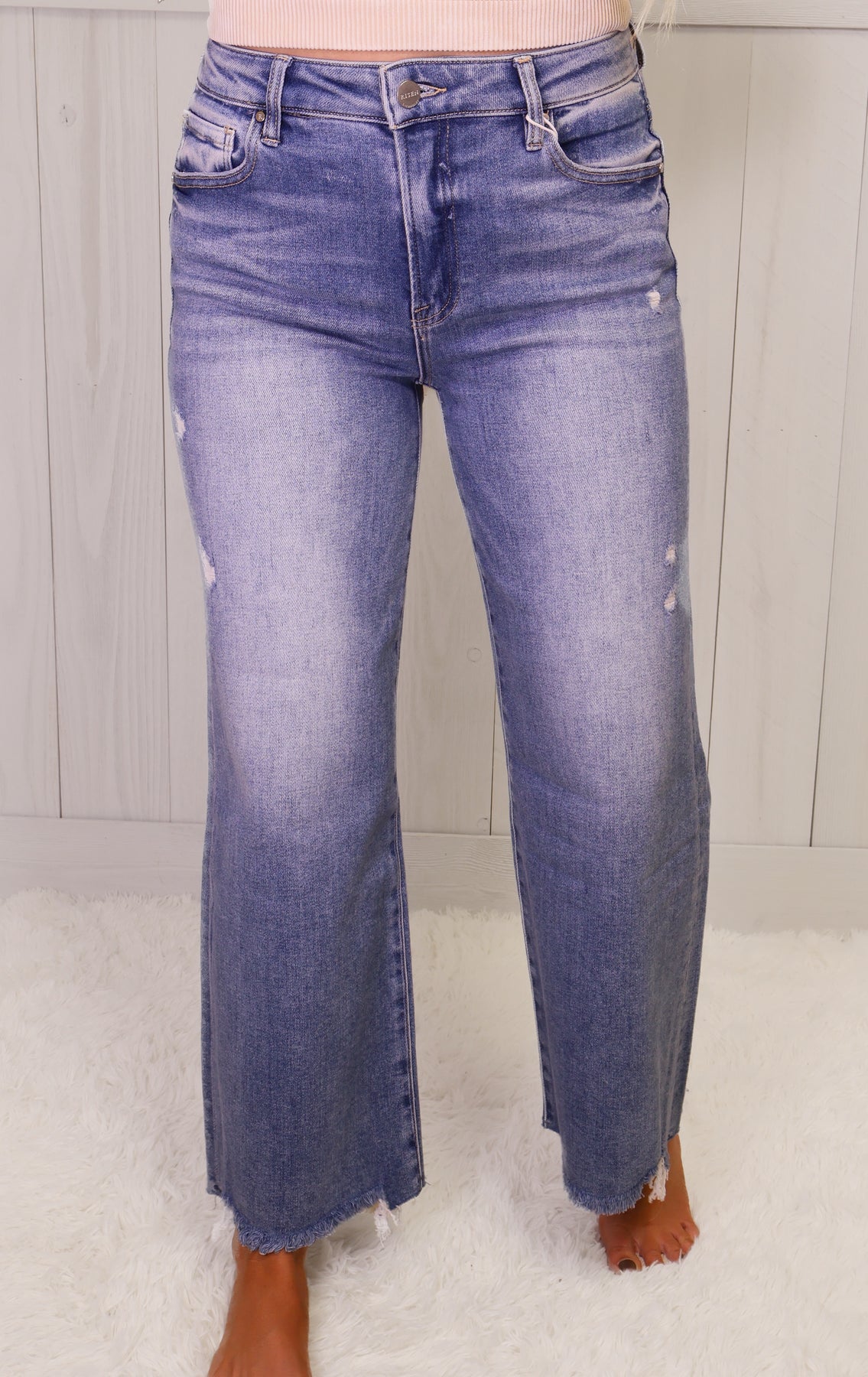 Experience ultimate comfort and style with our Risen Medium High Rise Wide Leg Jeans. Made with quality denim fabric, these jeans provide a flattering fit while maintaining their shape. Wear them for any occasion and elevate your fashion game.