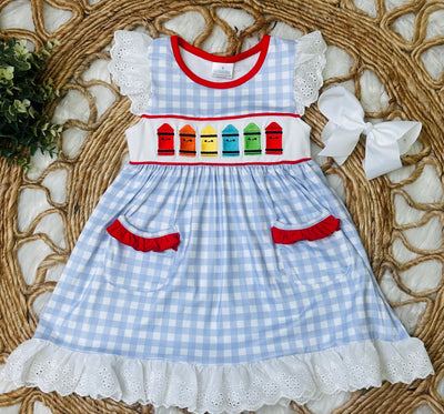 Crayon Plaid Ruffle Back to School Dress Girls