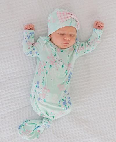 Baby Pink Plaid Tie Bamboo Gown and hat