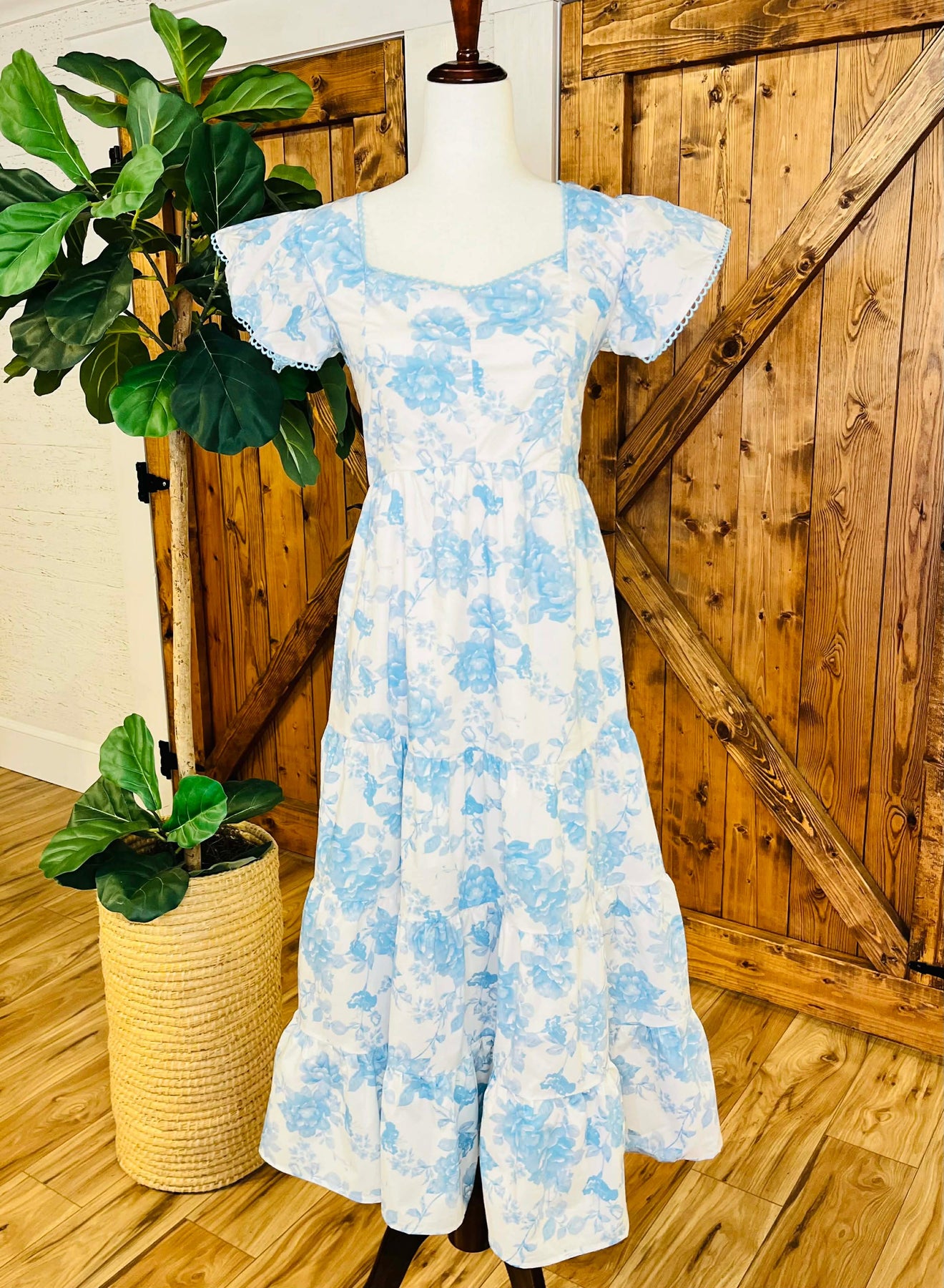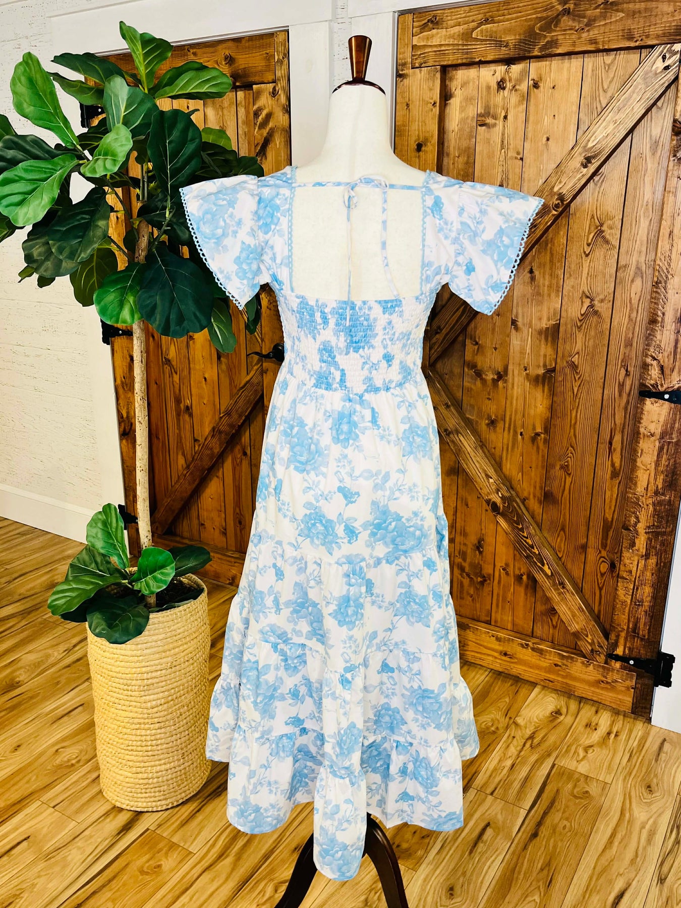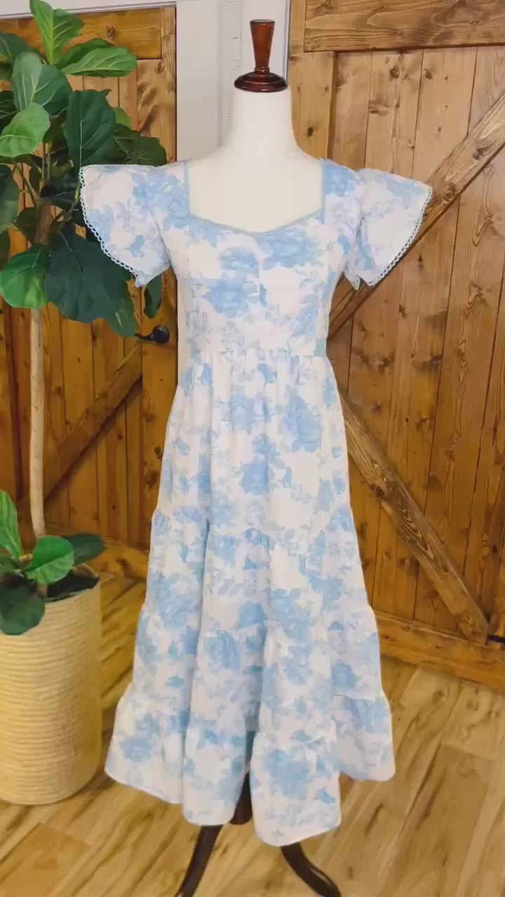 The Women’s Peach Love Blue Floral Maxi Dress features a floral design with flutter sleeves and a smocked back, providing both style and comfort. The maxi length offers full coverage, while the smocked back ensures a tailored fit, enhancing ease of movement. This dress is ideal for various occasions, combining elegance with practicality.
