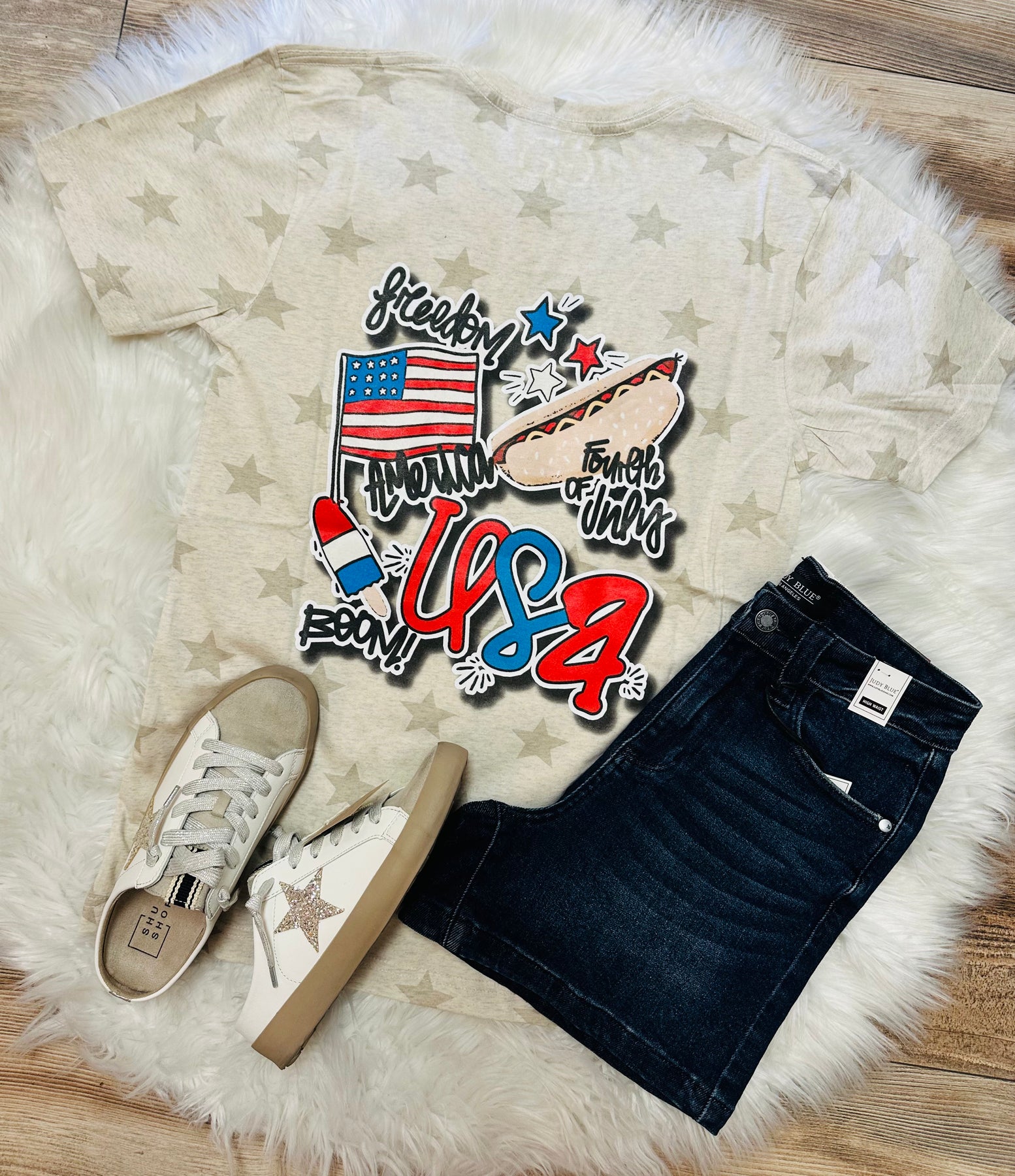 Celebrate Independence Day in style with our Golden Girls 4th of July Tee! This bow tee adds a touch of fun and flair to your patriotic outfit. Show off your love for your country and your favorite show with this unique and fashionable piece. Limited quantities available, so order yours now!