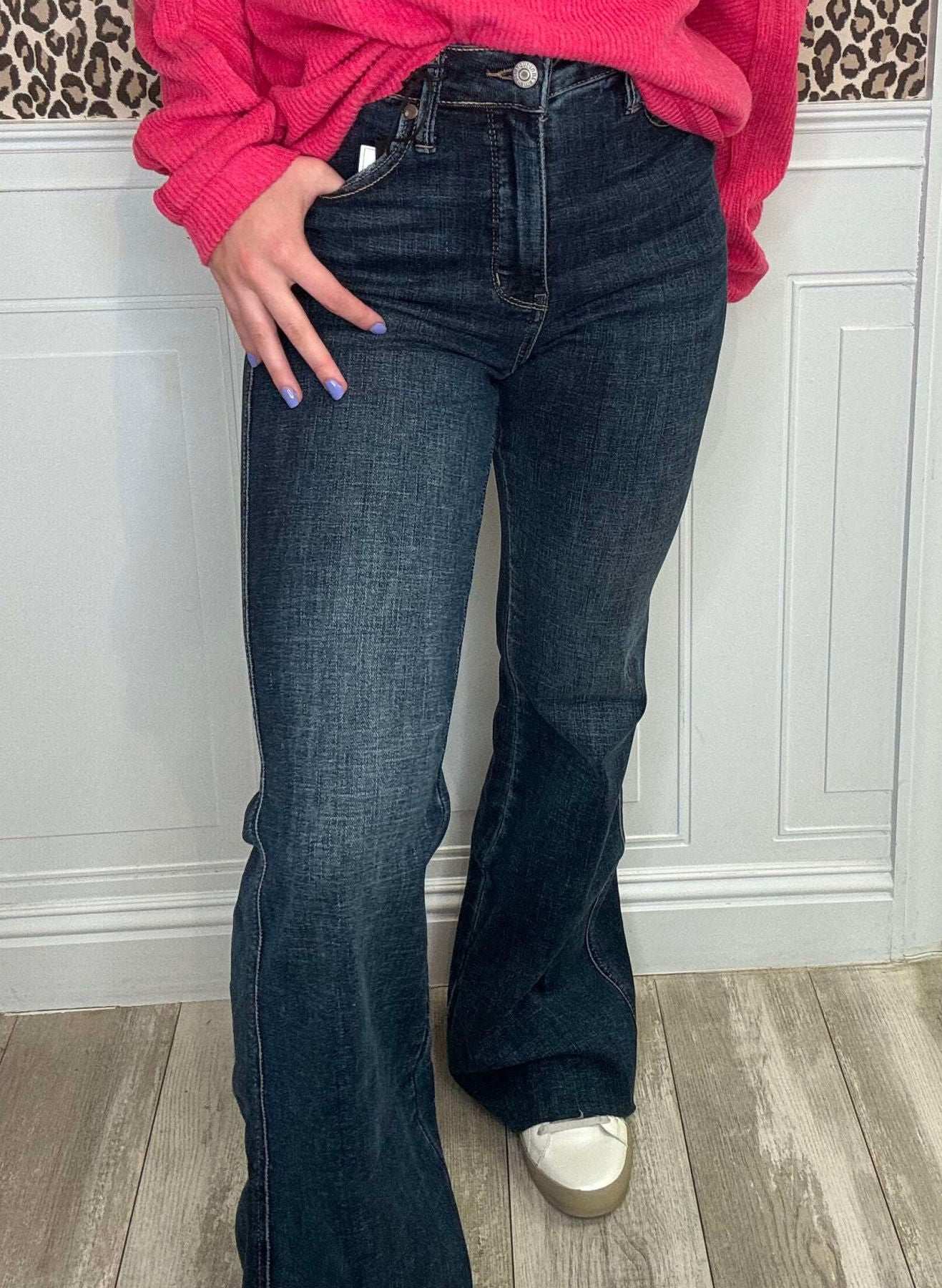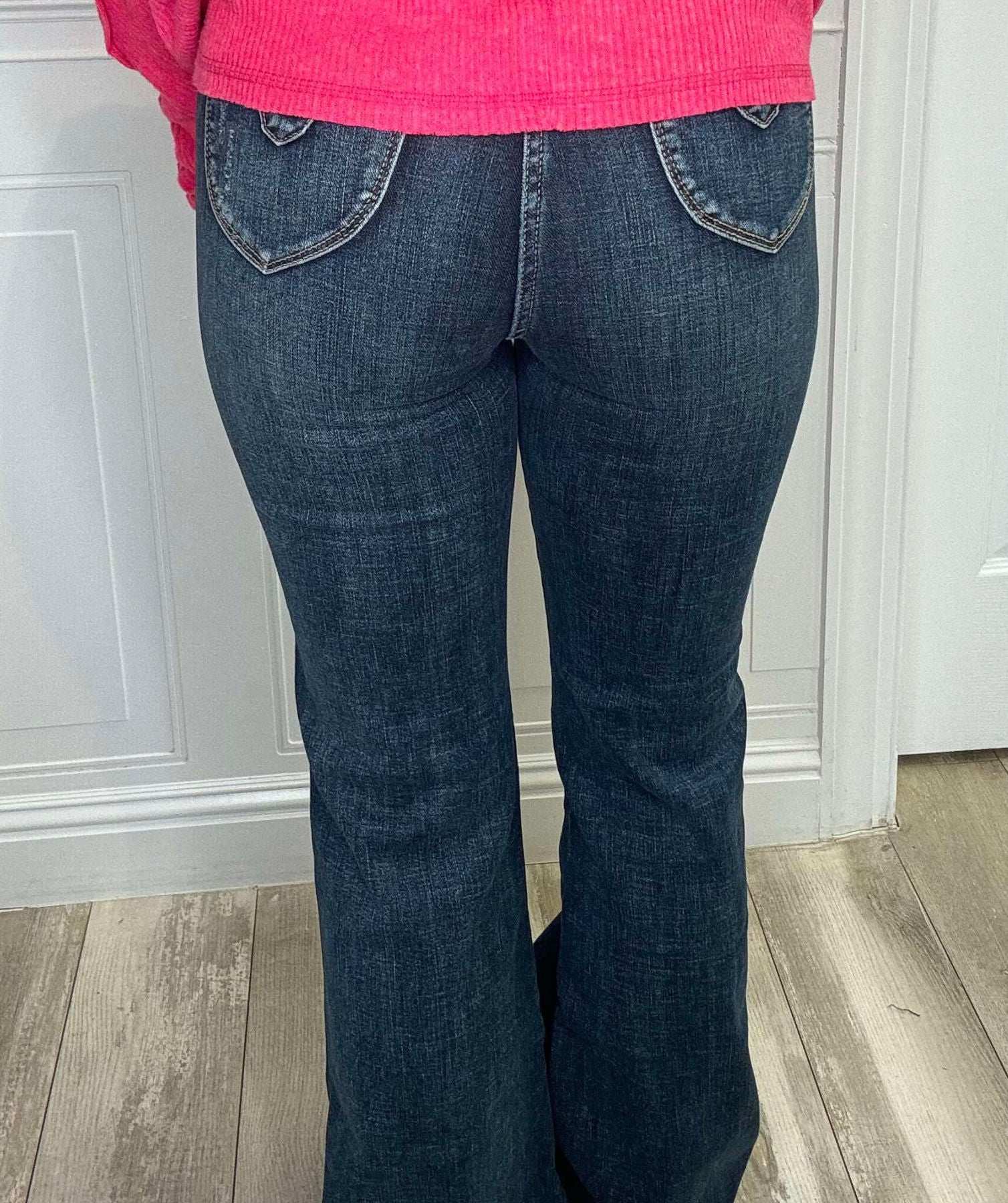 Introducing the Judy Blue High Waist Tummy Control Shield Back Pocket Flare jeans! Flaunt a stunning silhouette with this dark wash flare, designed to turn heads and flatter all body shapes. Upgrade your wardrobe with this statement piece.