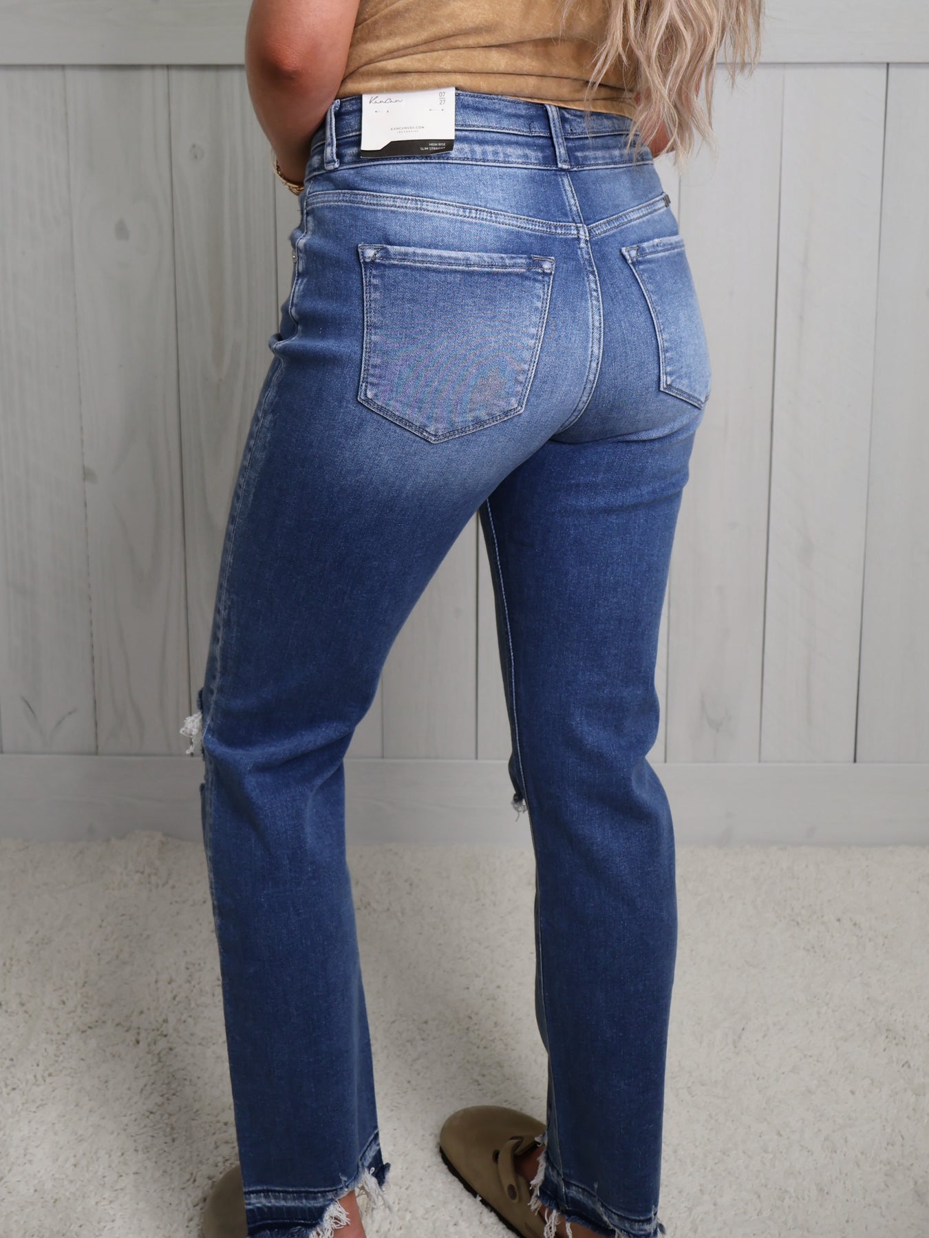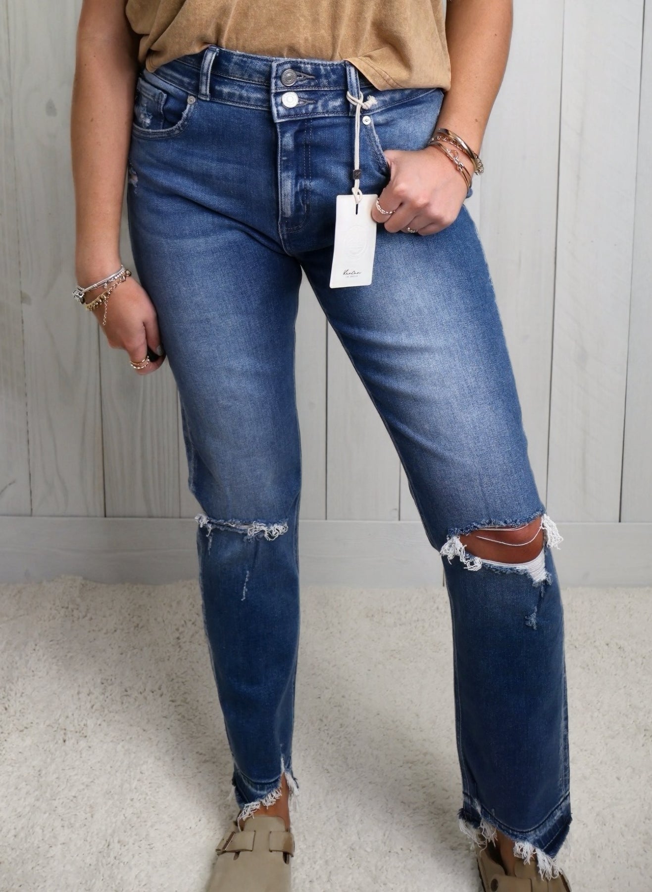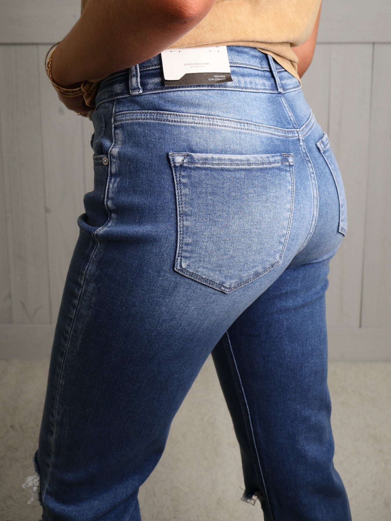 Embrace ultimate comfort and style with Kancan Jeans 8730! These stretchy jeans feature frayed ankles and knees for a trendy, edgy look. Perfect for any occasion, these jeans are a must-have in any fashion lover's wardrobe. Don't just wear jeans, make a statement with Kancan!