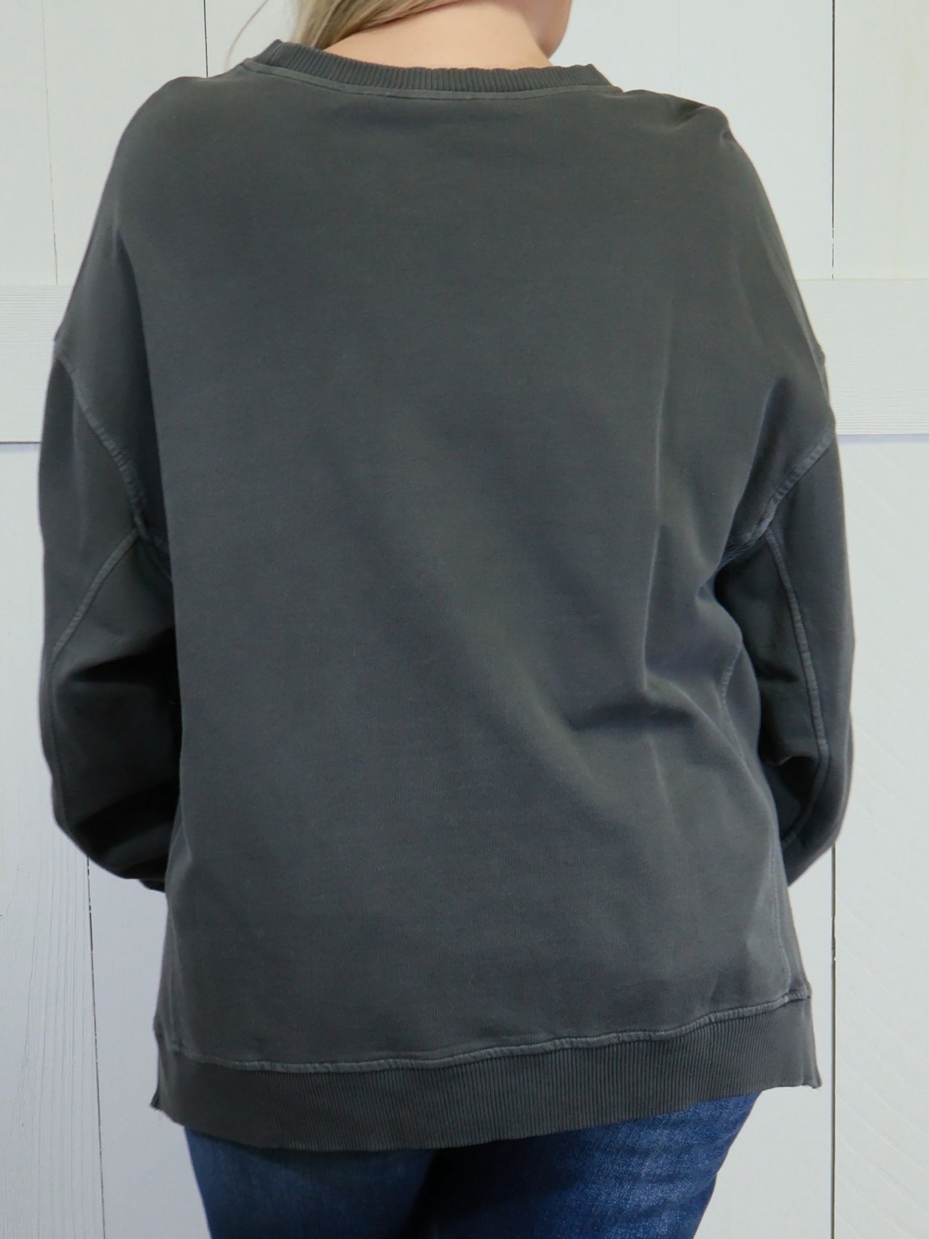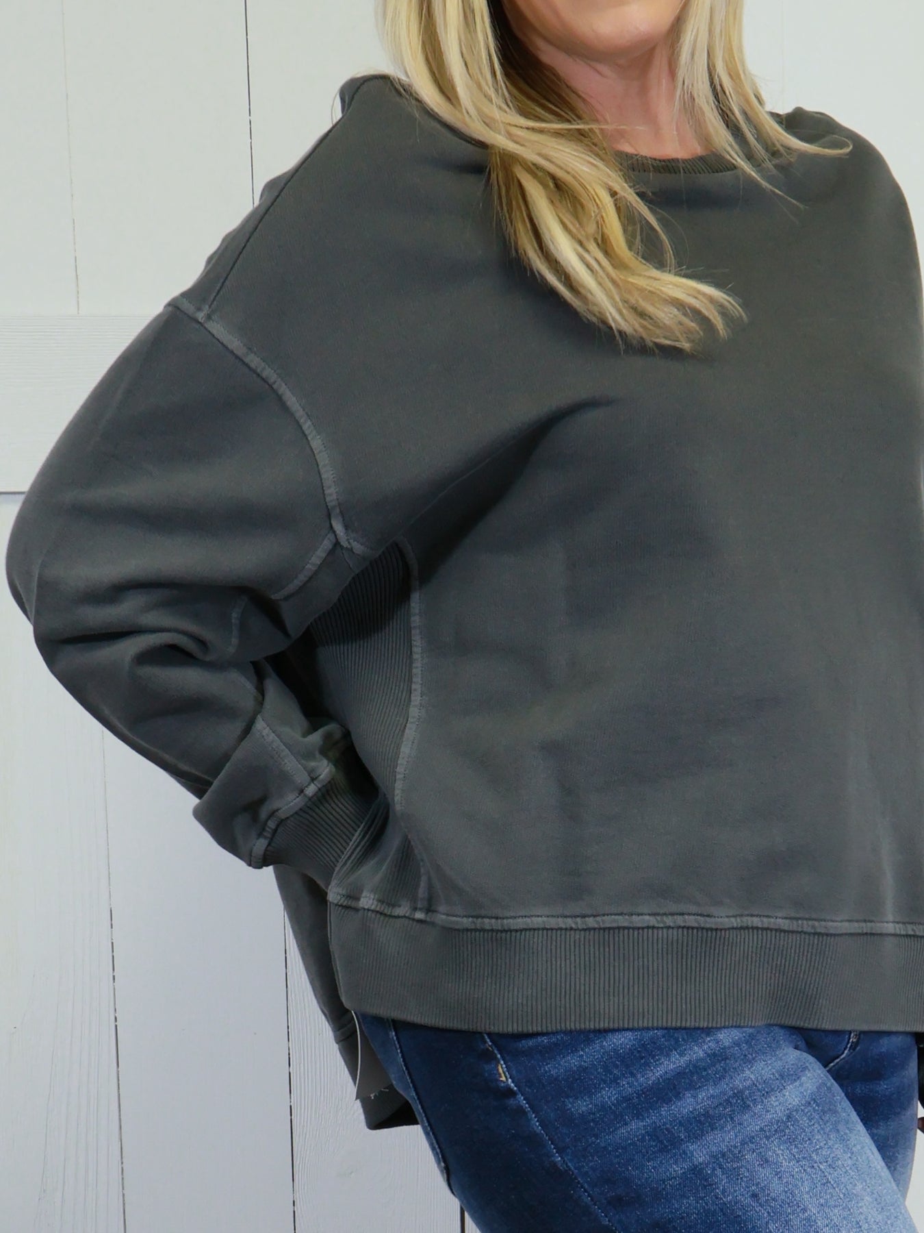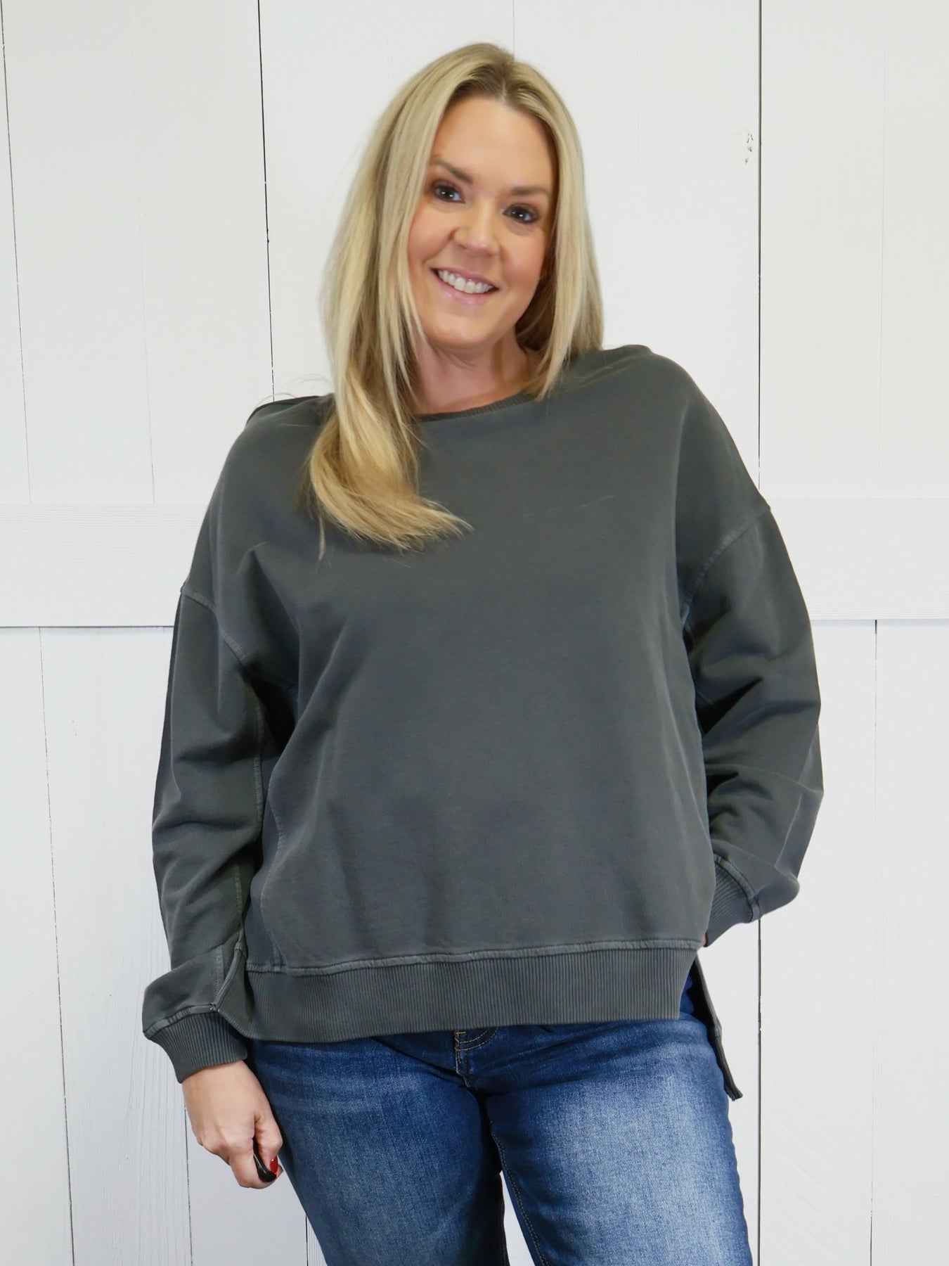 Women’s Basic Zenana Enzyme Wash Split Side Oversized Pullover Sweater Sleet Black