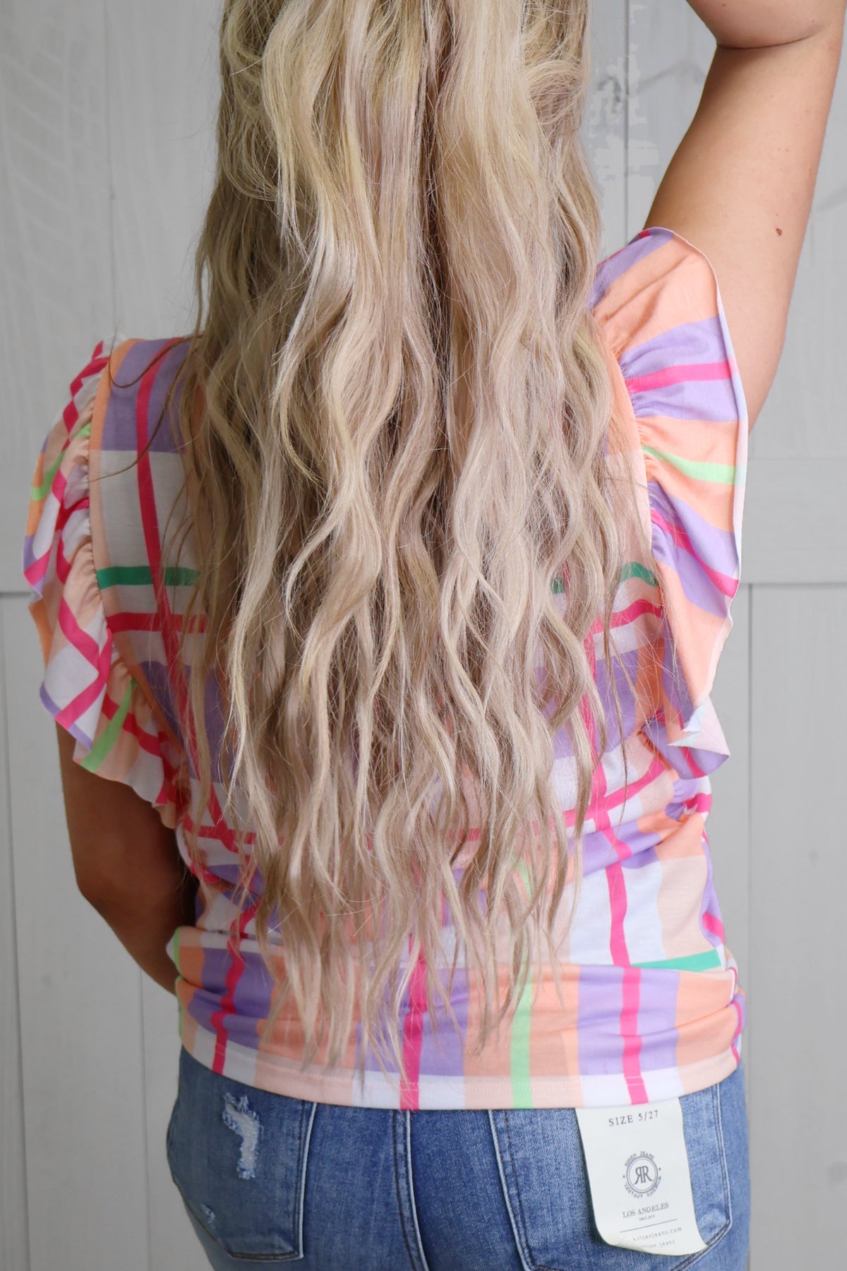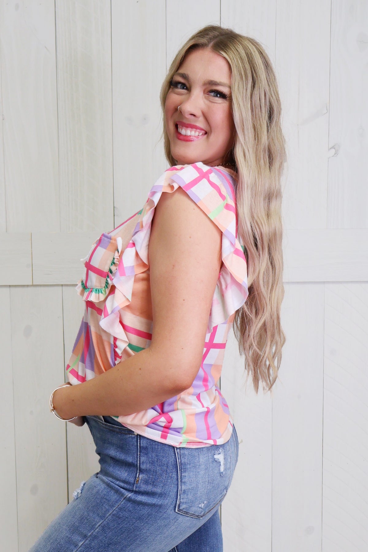 Discover the perfect blend of feminine charm and versatile styling with our Ruffle Sleeve Top. Designed to exude elegance, this top offers a comfortable fit that will keep you looking and feeling great all day long. Elevate your wardrobe with this chic piece that seamlessly transitions from casual to formal occasions.