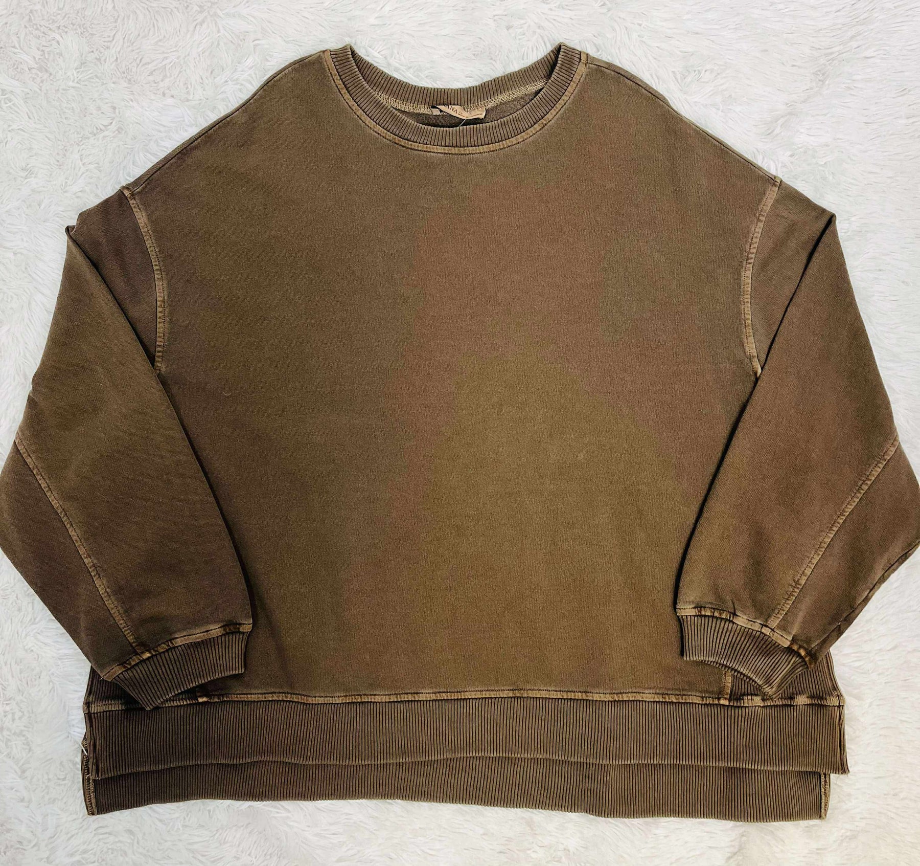 Women’s Curvy Enzyme Wash Pullover Sweater Brown