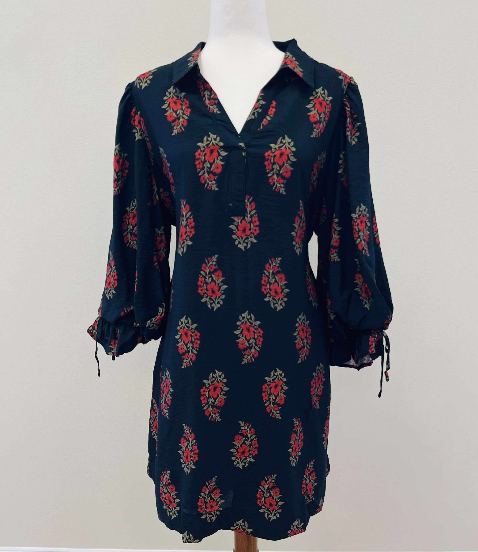 Expertly designed for the modern woman, this black floral collared dress is a versatile addition to any wardrobe. Made with high-quality material, it offers both comfort and style. Perfect for any occasion, this dress is a must-have for any fashion-forward individual. Experience the perfect blend of elegance and functionality with this dress.