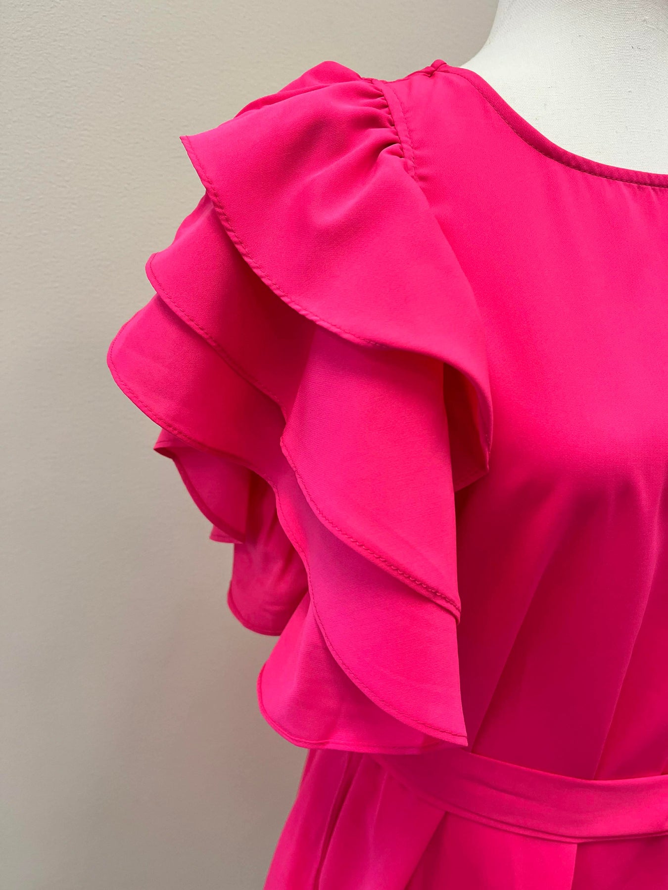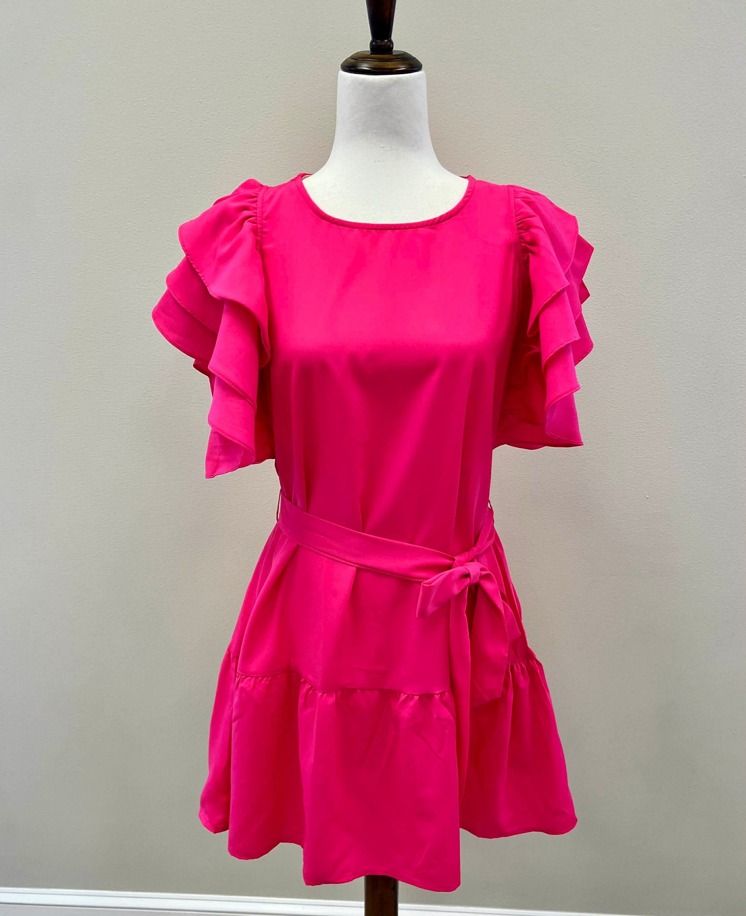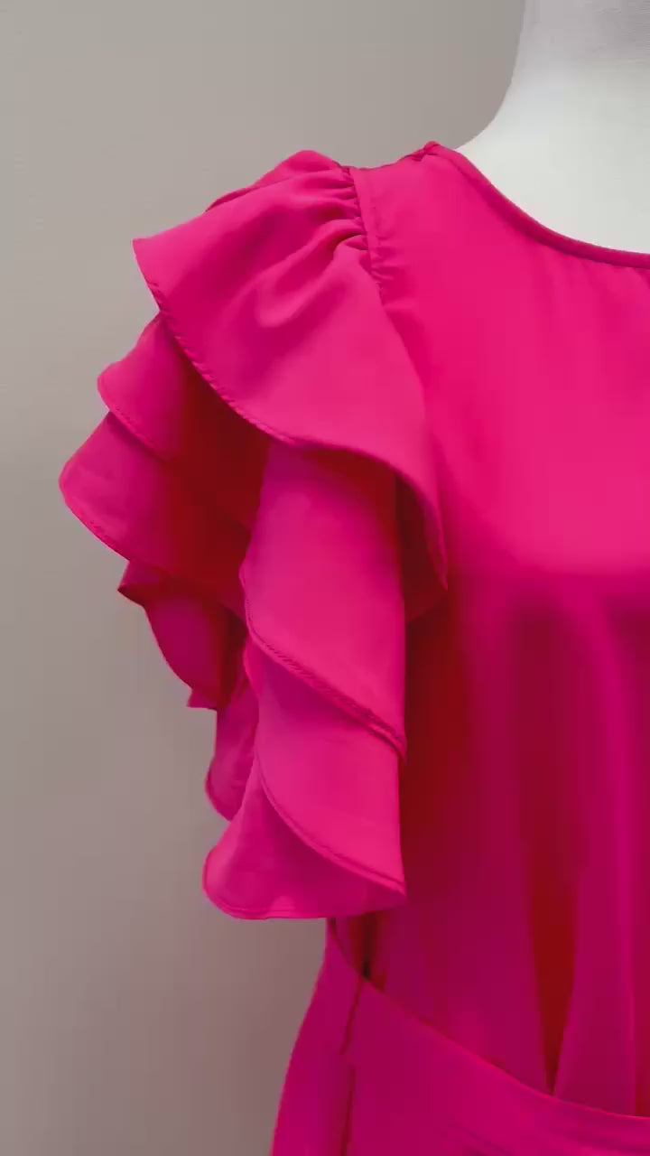 The Women’s Bright Pink Ruffle Sleeve Belted Dress combines elegance with functionality. Its ruffle sleeves provide a stylish aesthetic while the belted waist enhances the silhouette, ensuring a flattering fit. Ideal for various occasions, this dress offers both comfort and sophistication, promoting confidence in any setting.