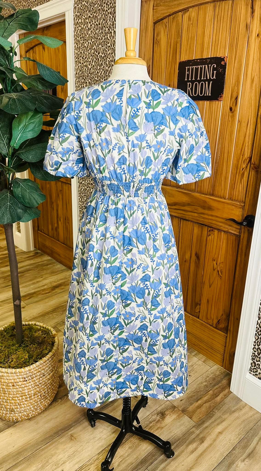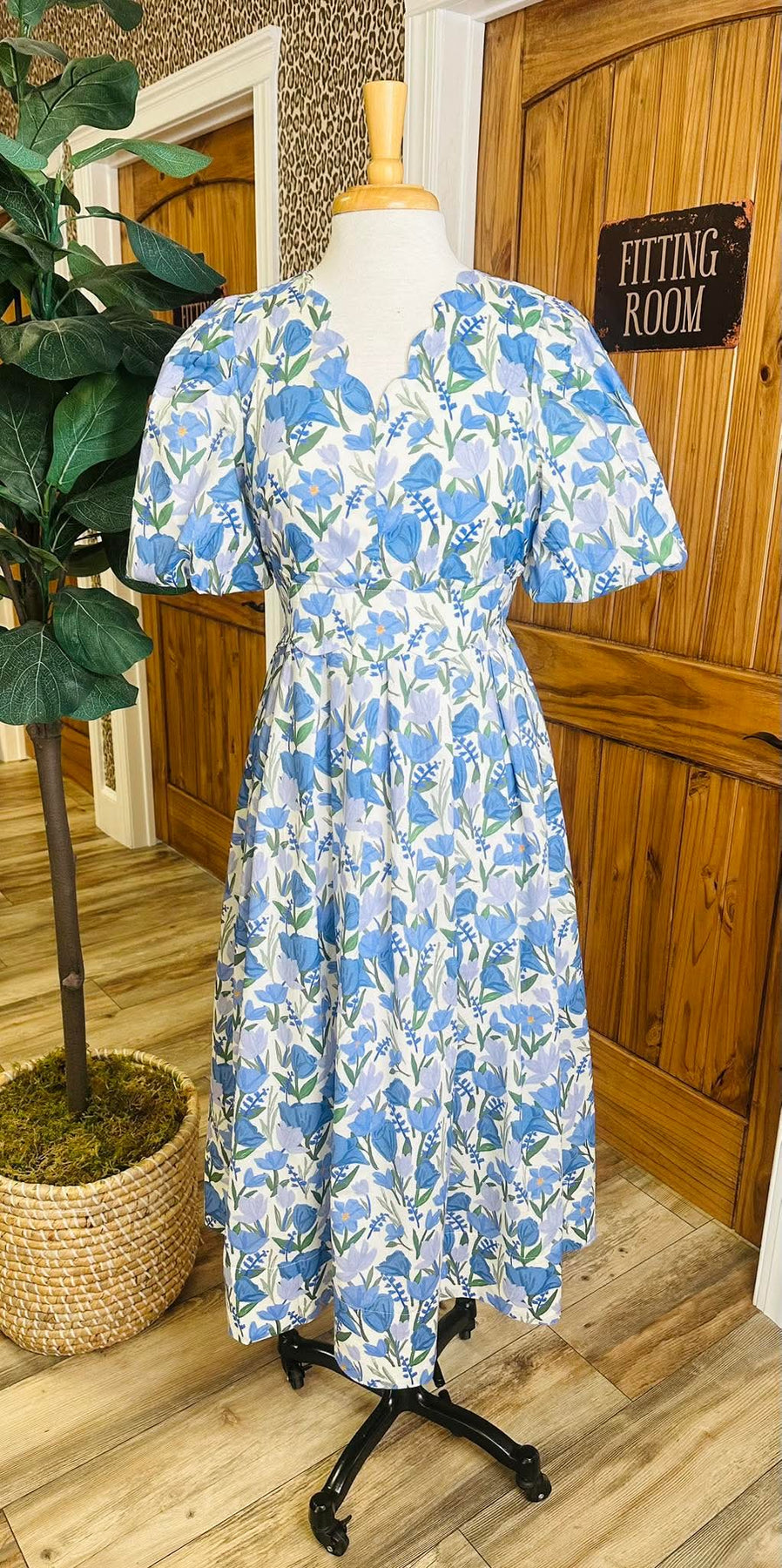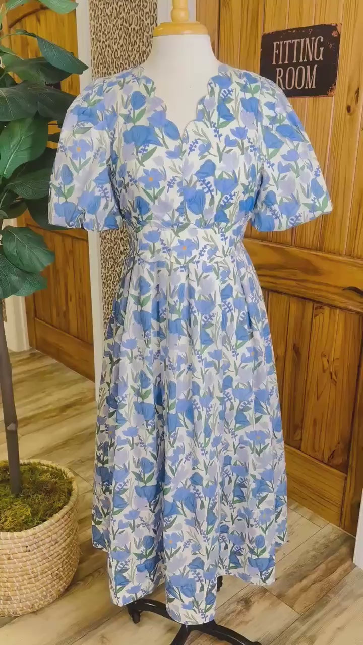 The Women’s GiGiO Blue Floral Scalloped Trim Midi Dress features a floral design and scalloped trim, enhancing its visual appeal. The midi length provides a balance between elegance and comfort, making it suitable for various occasions. This dress combines style with versatility, ensuring it meets diverse fashion needs.