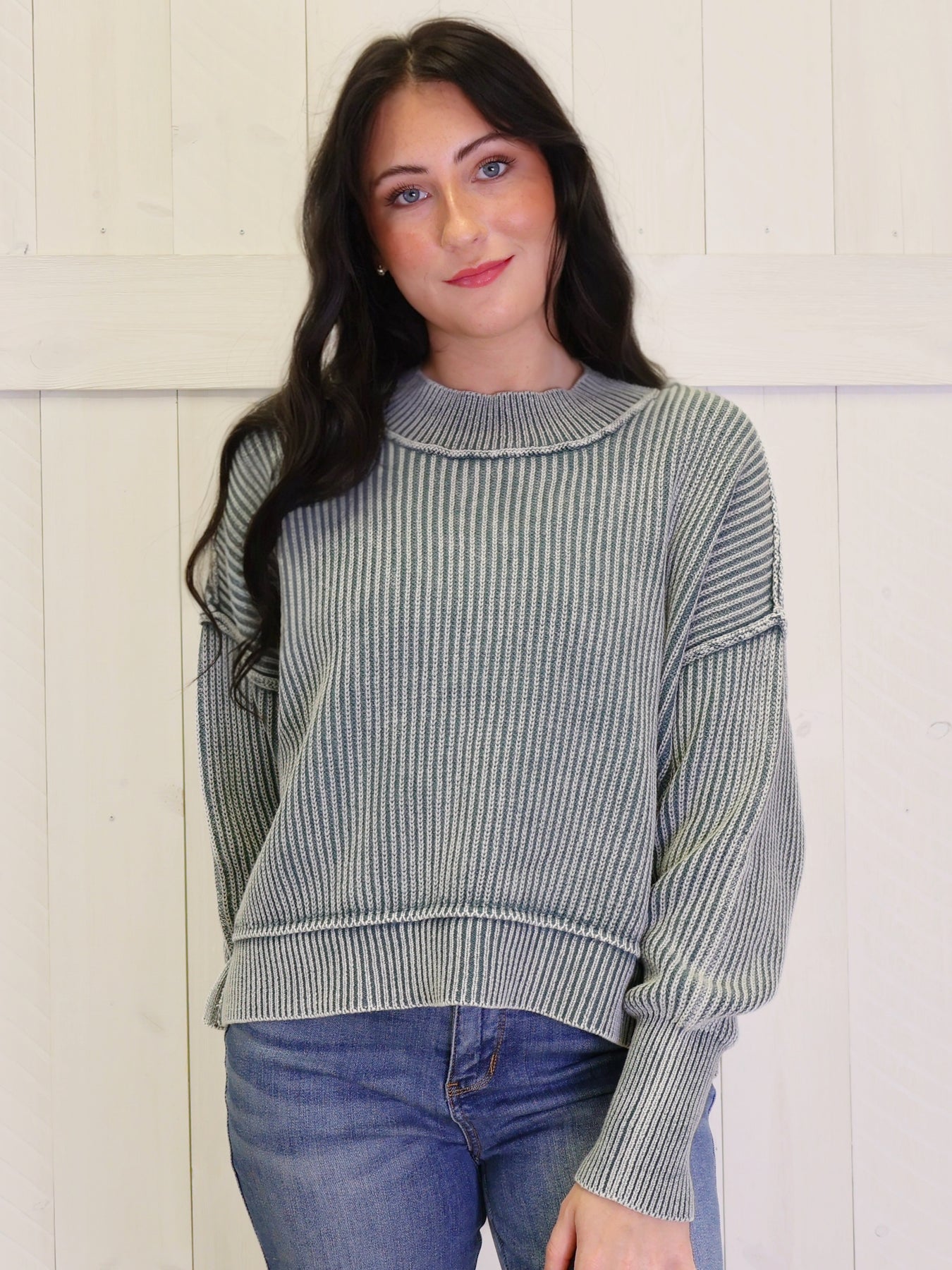 Ash Jade Basic Washed Side Slit Oversized Cropped Sweater Pullover