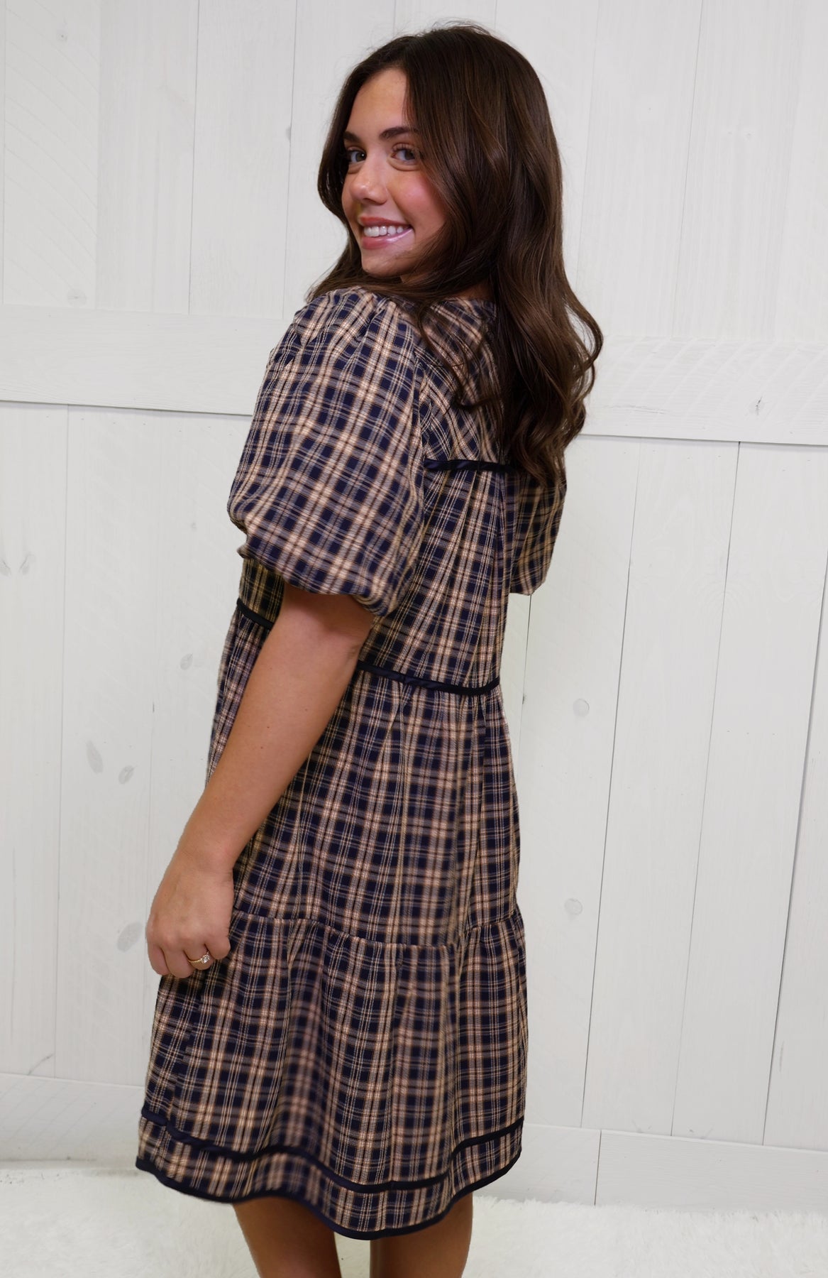 This GiGiO Navy Plaid Tiered Dress is a stylish and versatile addition to any wardrobe. The dress is made from high-quality materials and features a tiered design that adds texture and interest. Perfect for both casual and dressy occasions, this dress is sure to become a go-to piece for any fashion-forward individual.