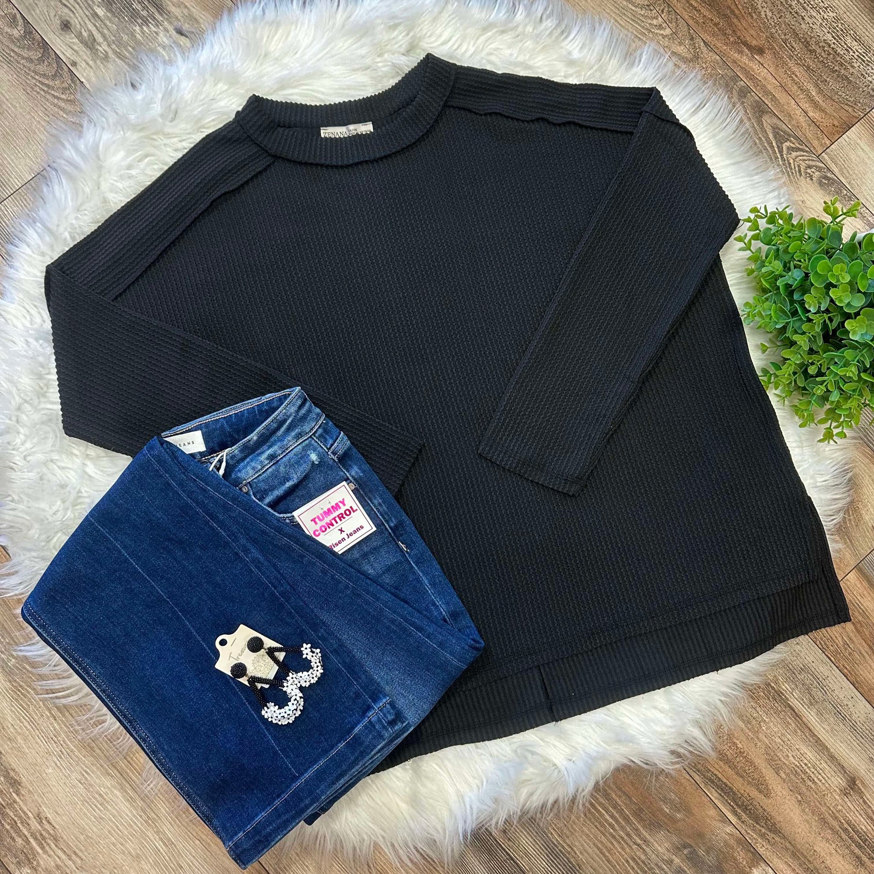 Zenana Basic Curvy Ribbed Raw Edge Top Black