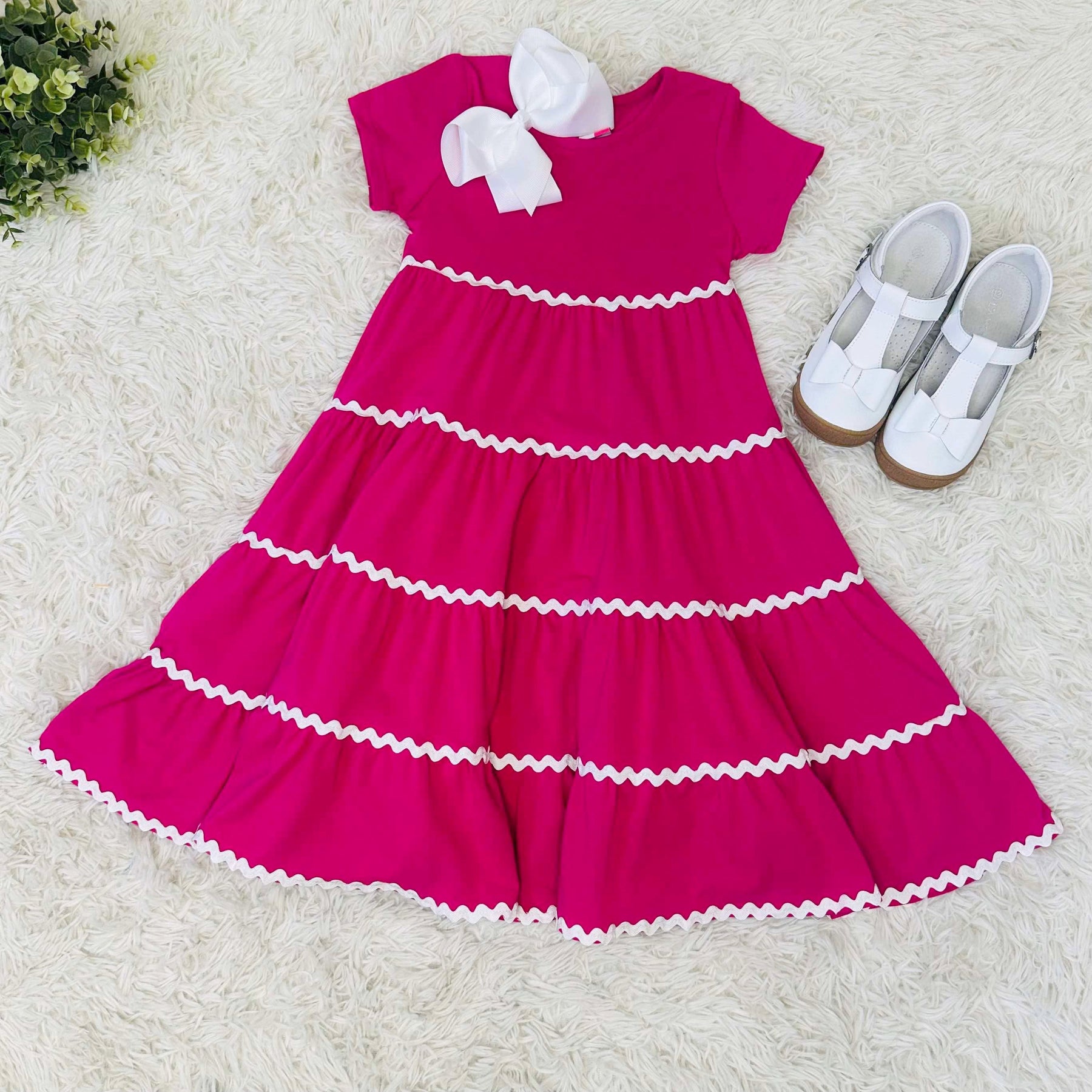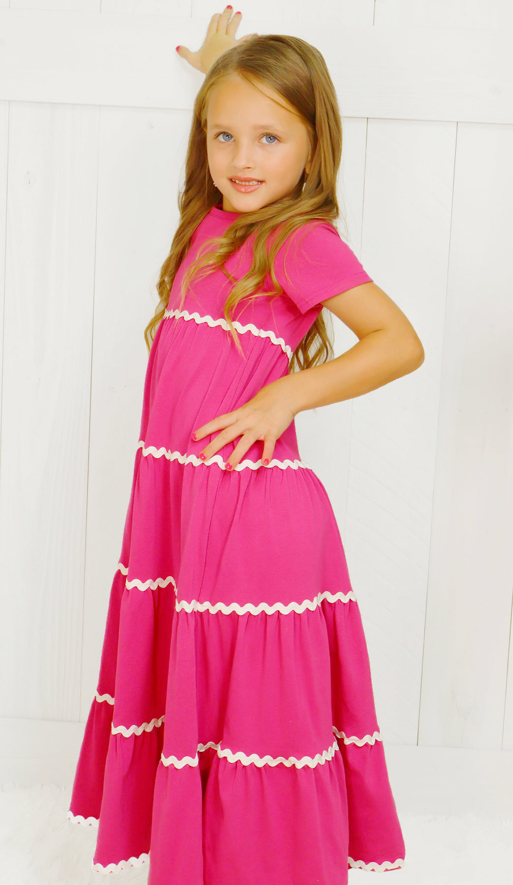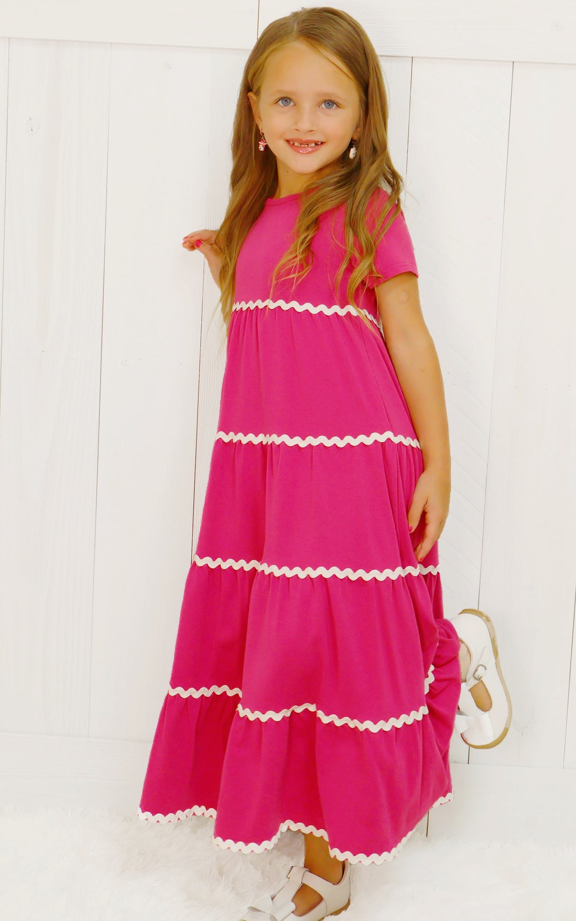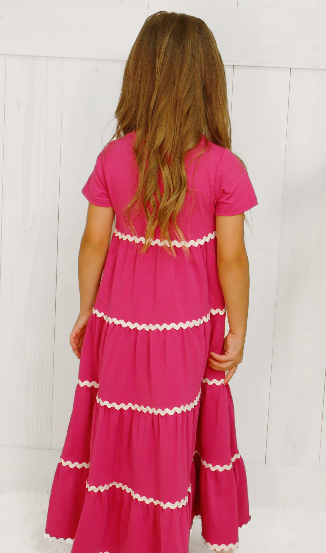 This maxi dress is designed for girls and features a charming ric rac trim detail. The versatile design is perfect for any occasion, while the ric rac trim adds a touch of playfulness. Made with high-quality materials, this dress is comfortable and durable.