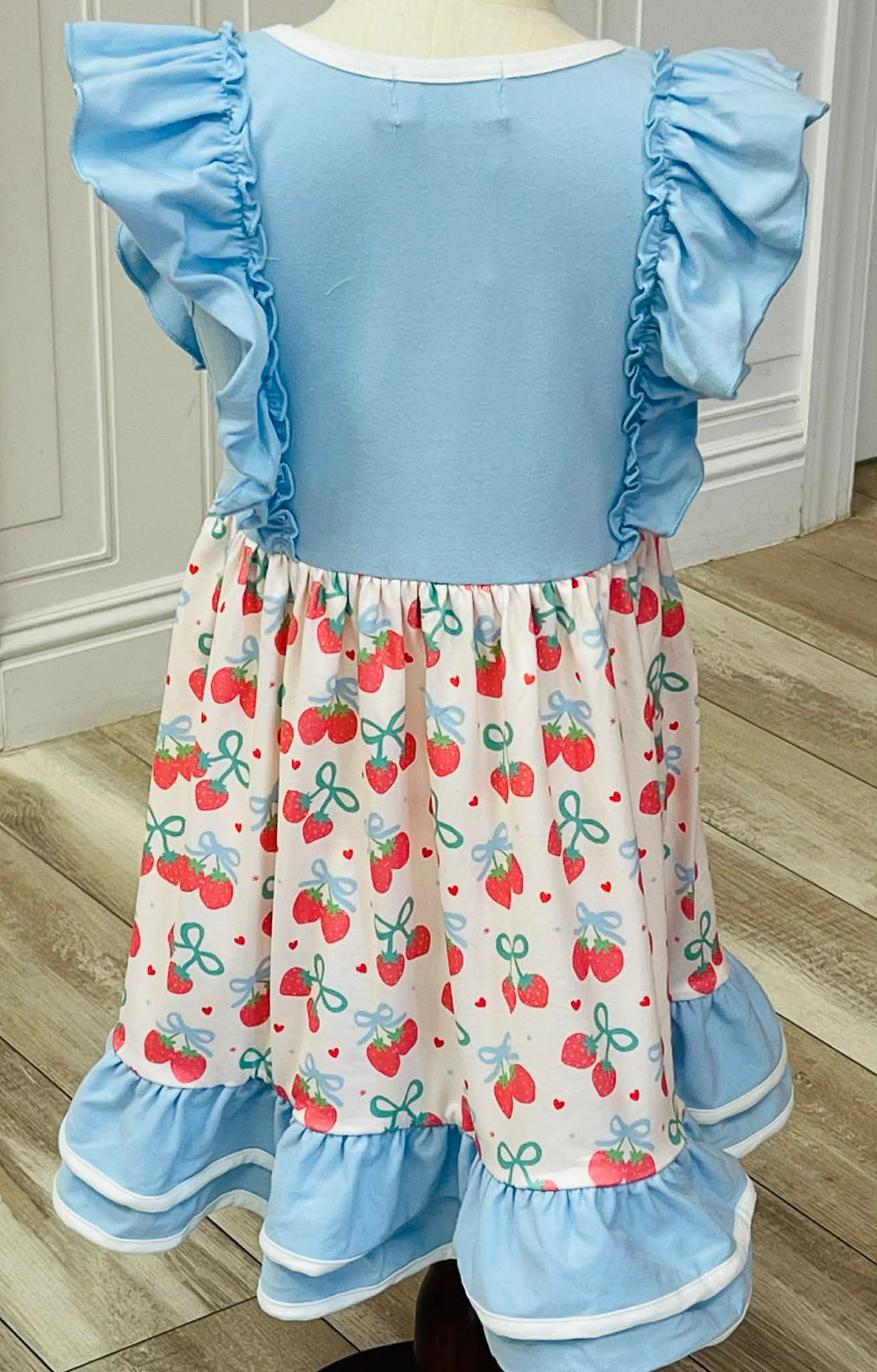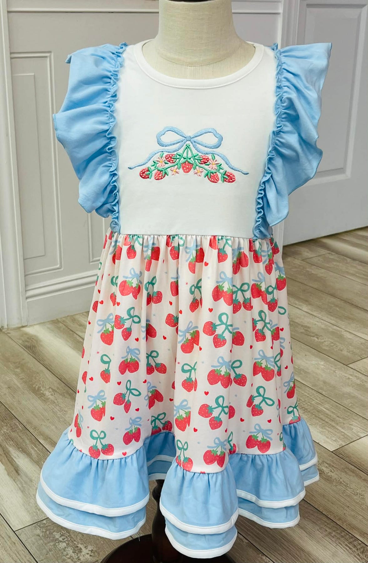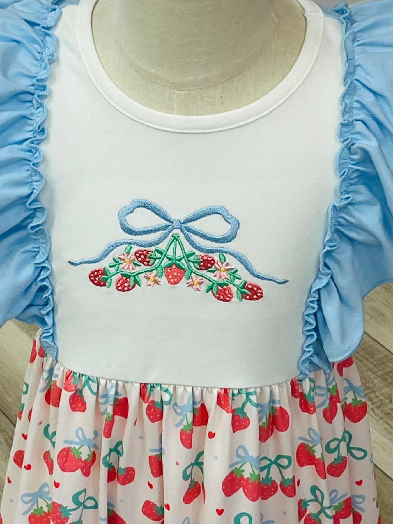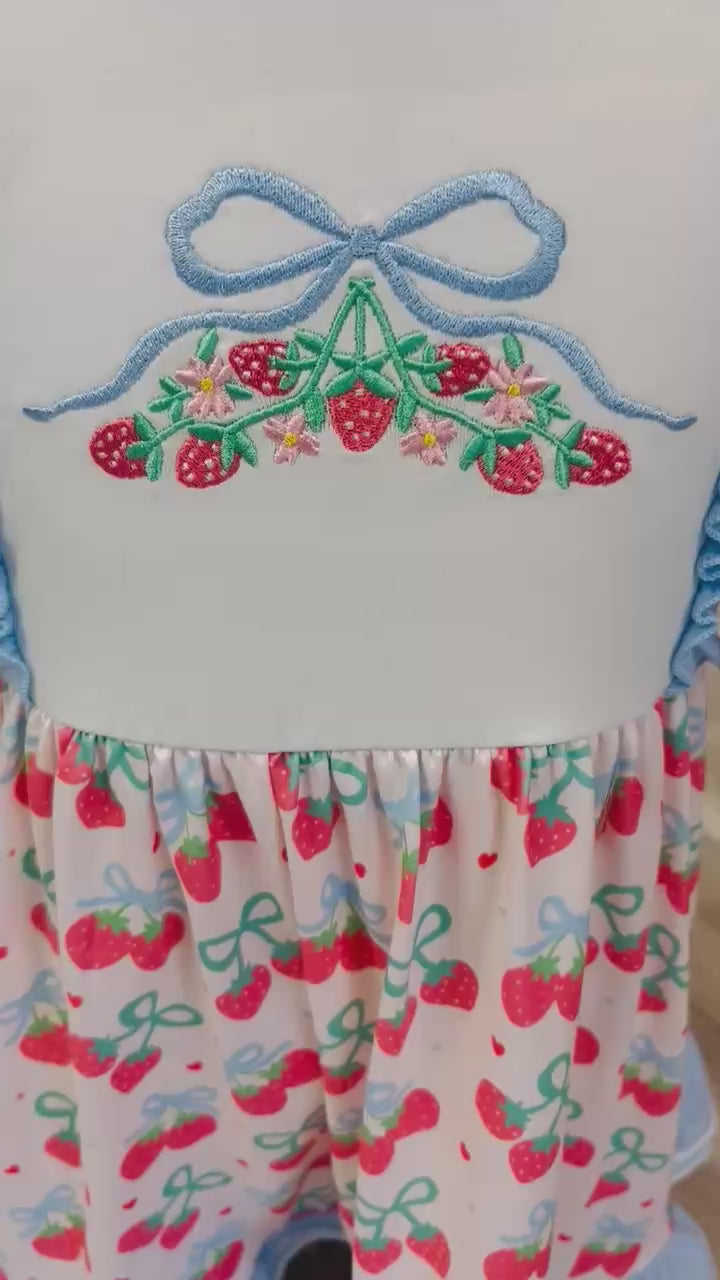 The Girls Strawberry Embroidered Ruffle Dress is designed specifically for young girls, offering both style and comfort. Its intricate strawberry embroidery enhances visual appeal, while the ruffle detailing adds a playful touch. This dress is ideal for various occasions, providing an elegant yet fun option for children's wear.