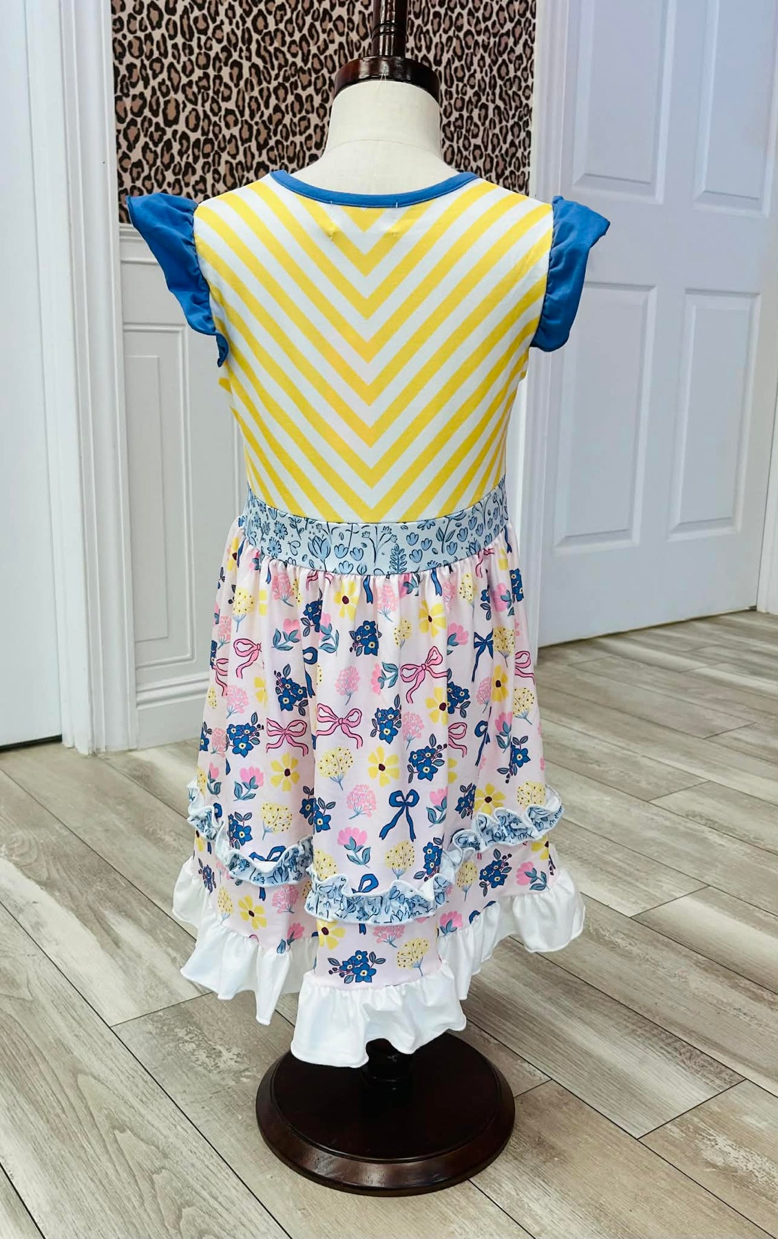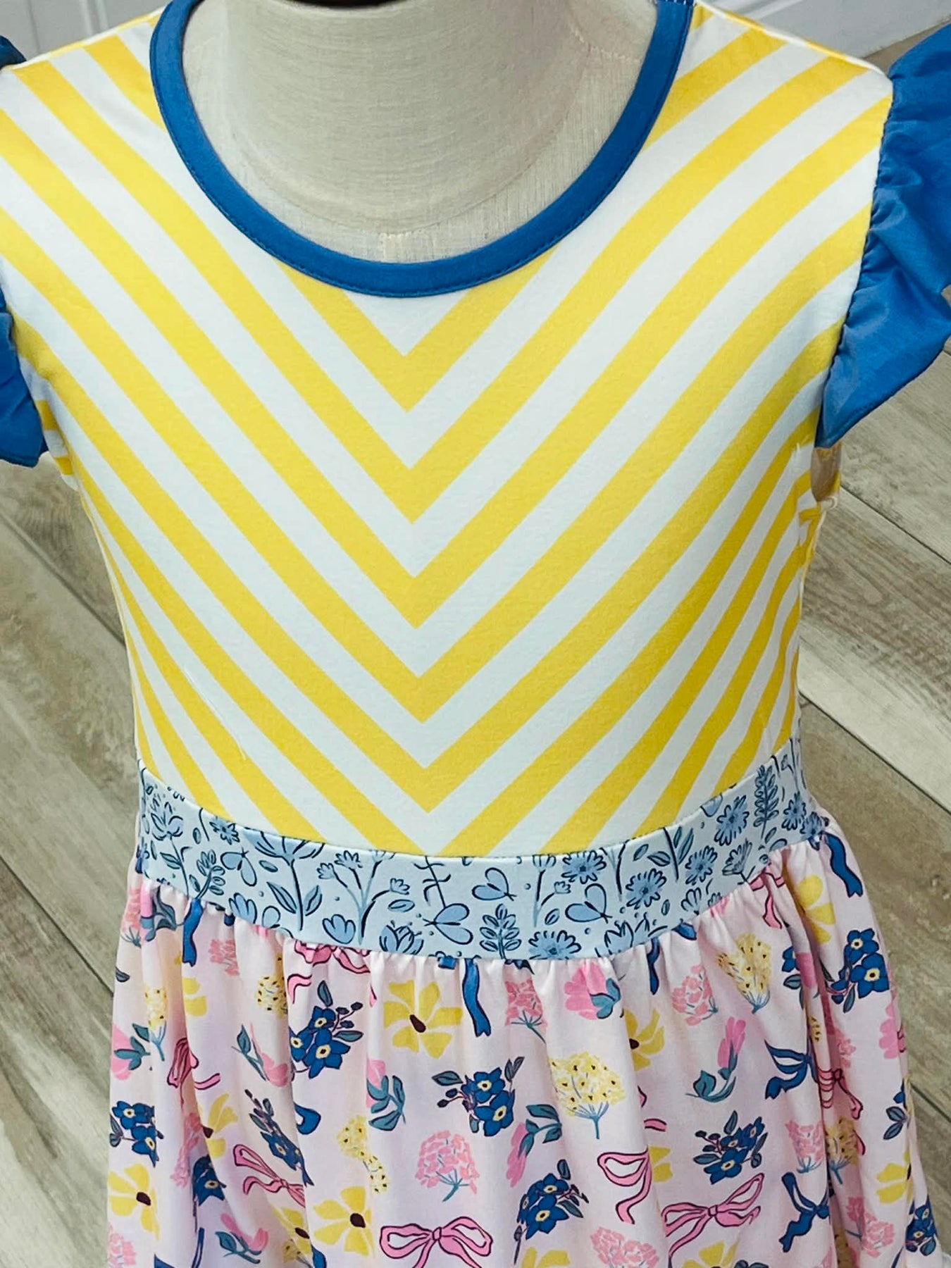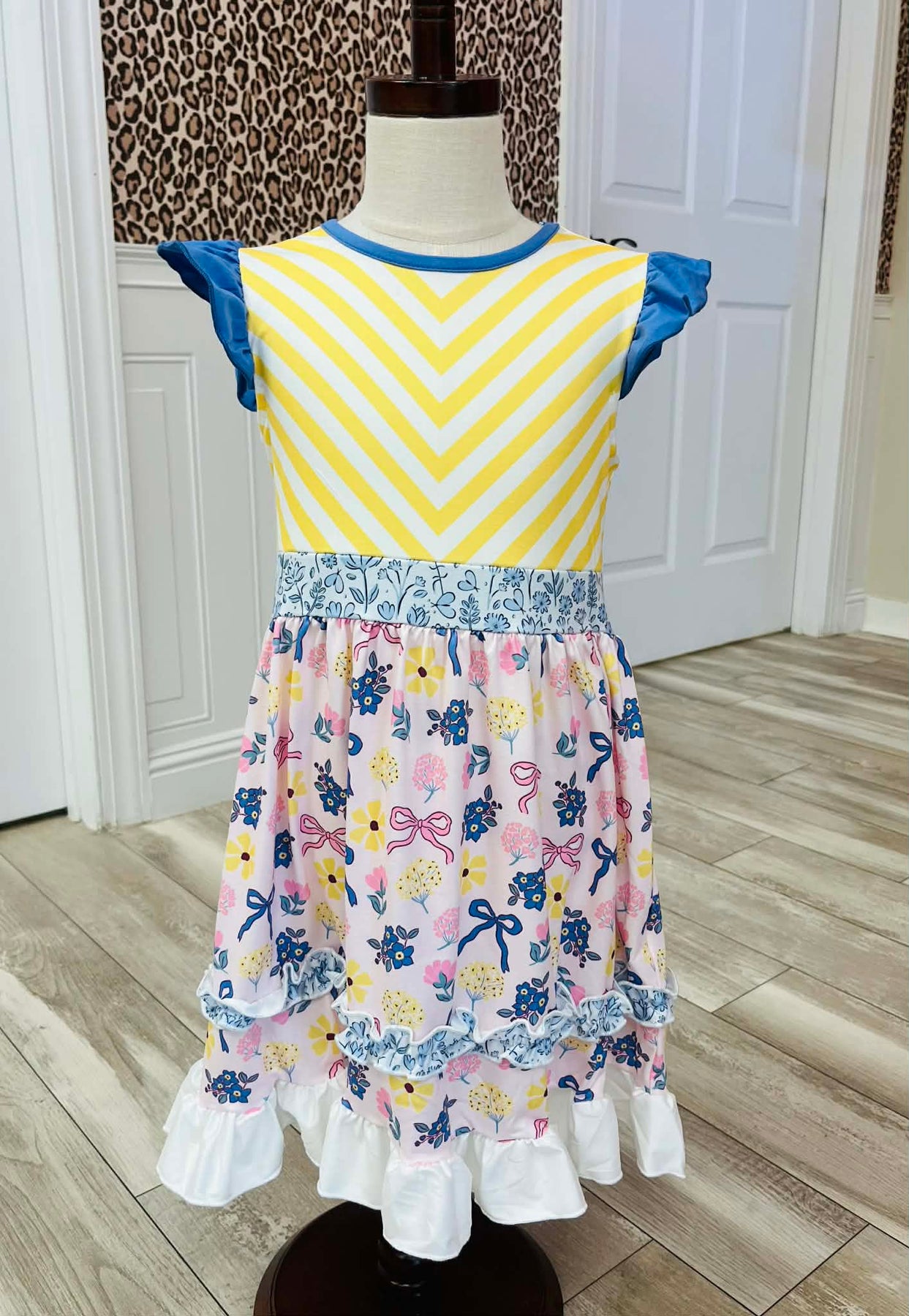 The Sunny Striped Floral Ruffle Dress combines a striped pattern with floral accents, offering a visually appealing design suitable for various occasions. Its ruffle detailing enhances femininity while providing comfort. Crafted from breathable fabric, it ensures ease of movement and wearability throughout the day.