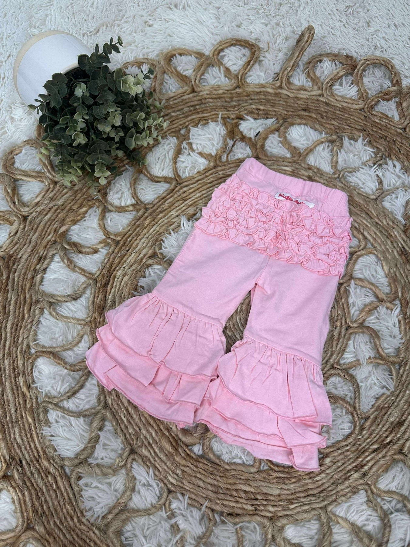Enhance your little girl's wardrobe with these adorable Girls Pink Ruffle Bottom Pants. Made with high-quality fabric, these pants are durable and comfortable for all-day wear. The ruffle detailing adds a touch of femininity, perfect for any occasion. Complete her outfit and elevate her style with these stylish pants.