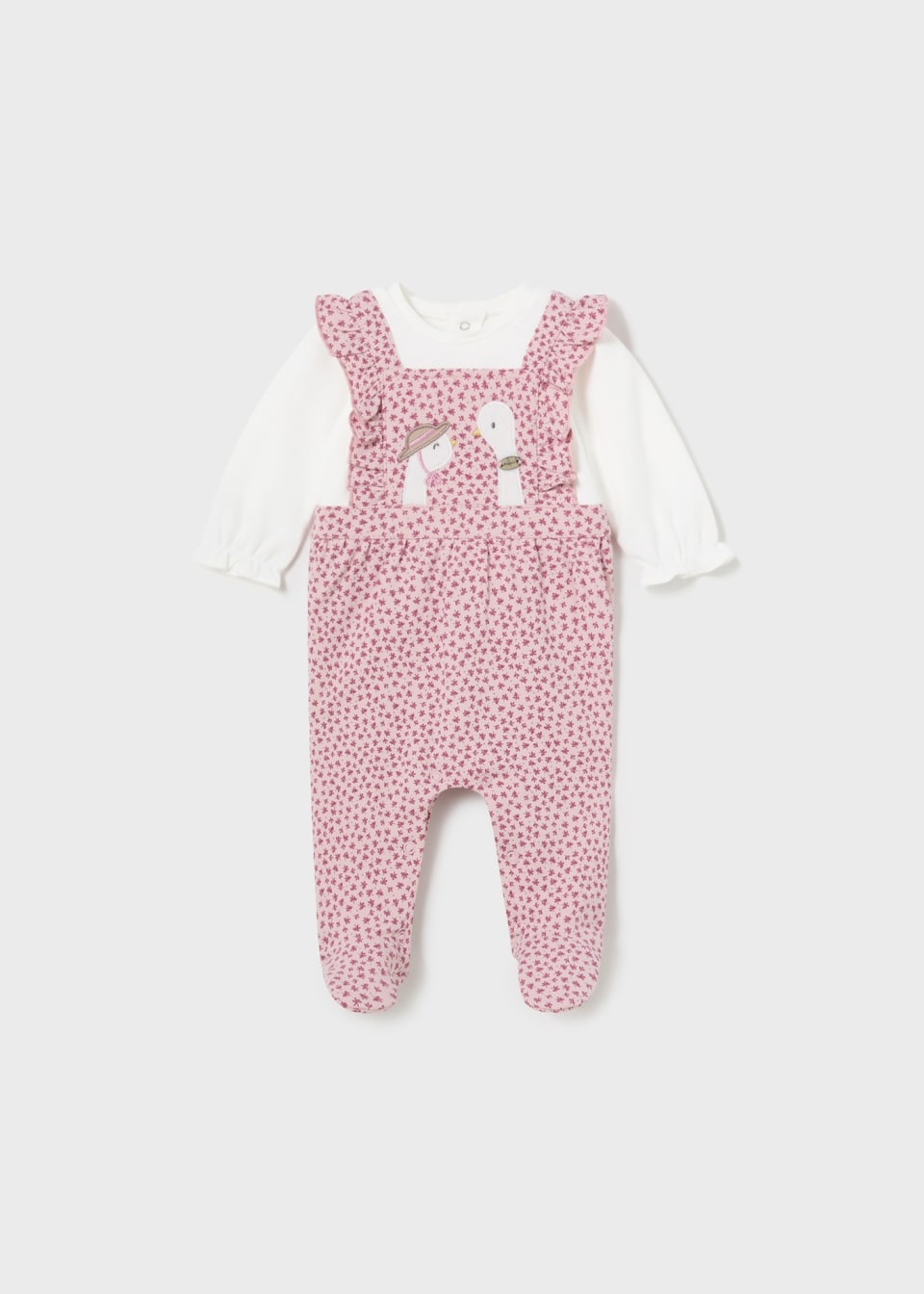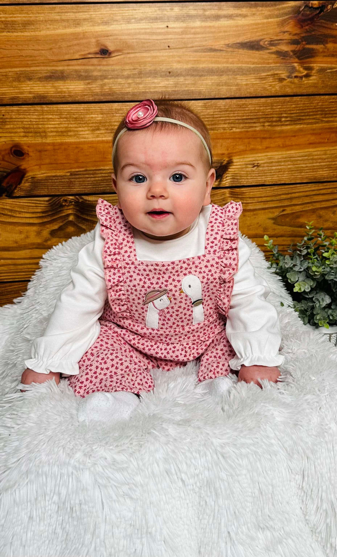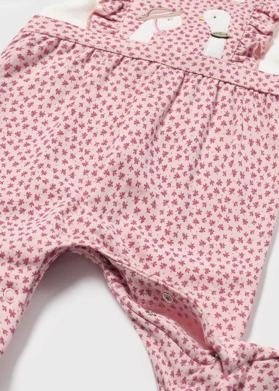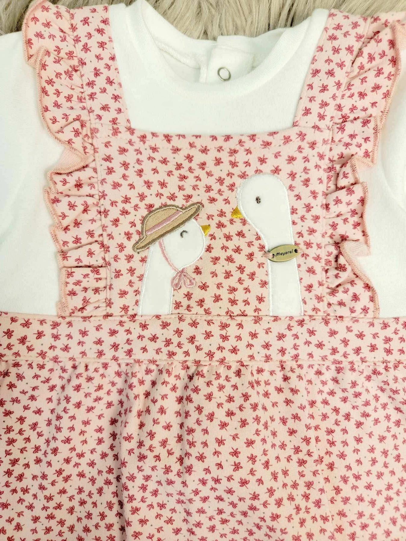 This cute floral pattern overall features geese in the center and a white long sleeve, making it a perfect one-piece for your baby. With its adorable design and comfortable fit, your baby will be both stylish and cozy.