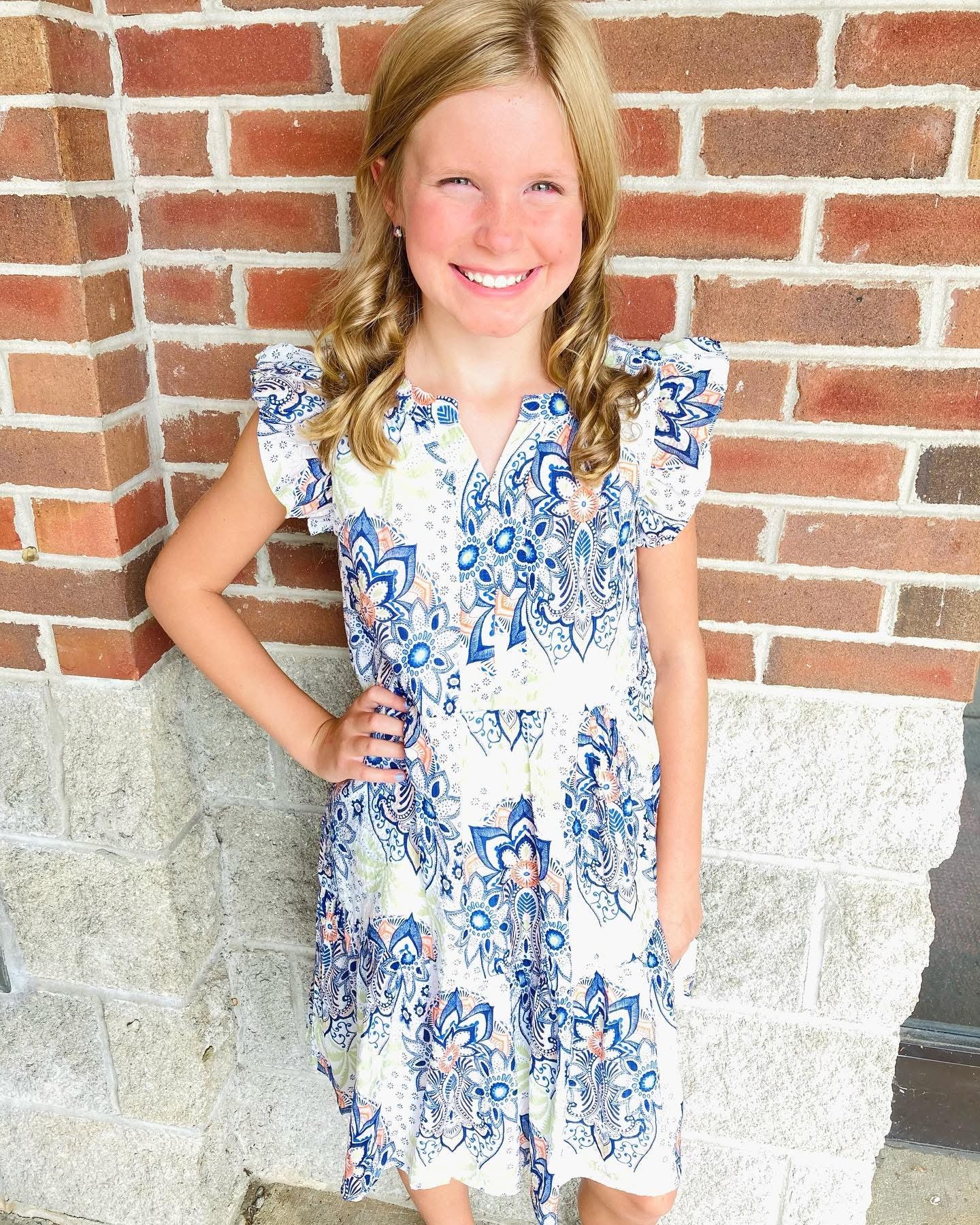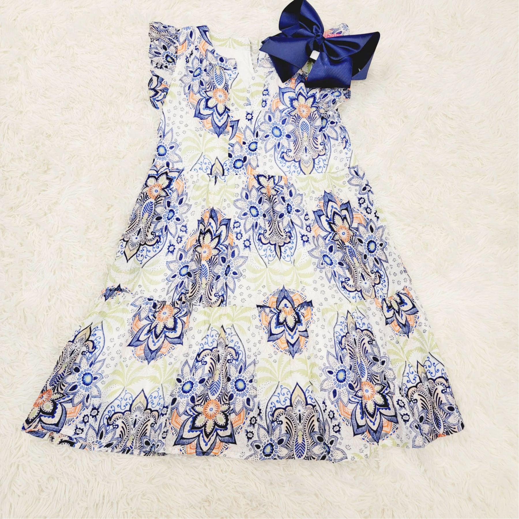 Elevate your little girl's wardrobe with this charming green and blue floral dress. Vibrant colors, a beautiful floral design, and a comfortable fit make it a must-have for any stylish young lady.
