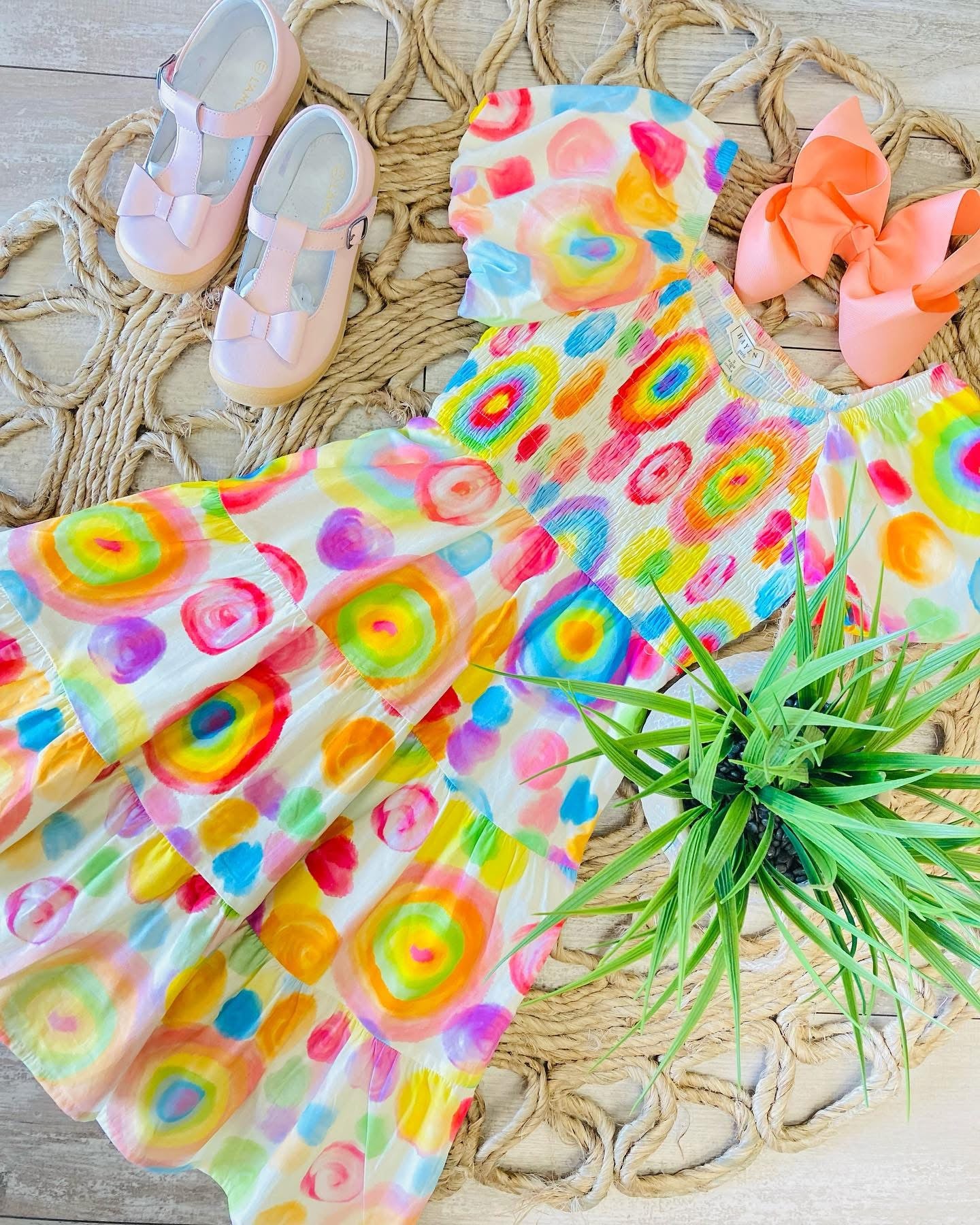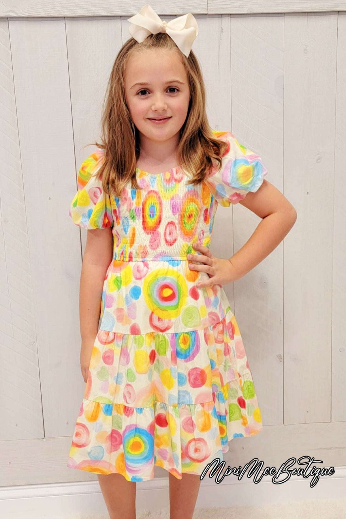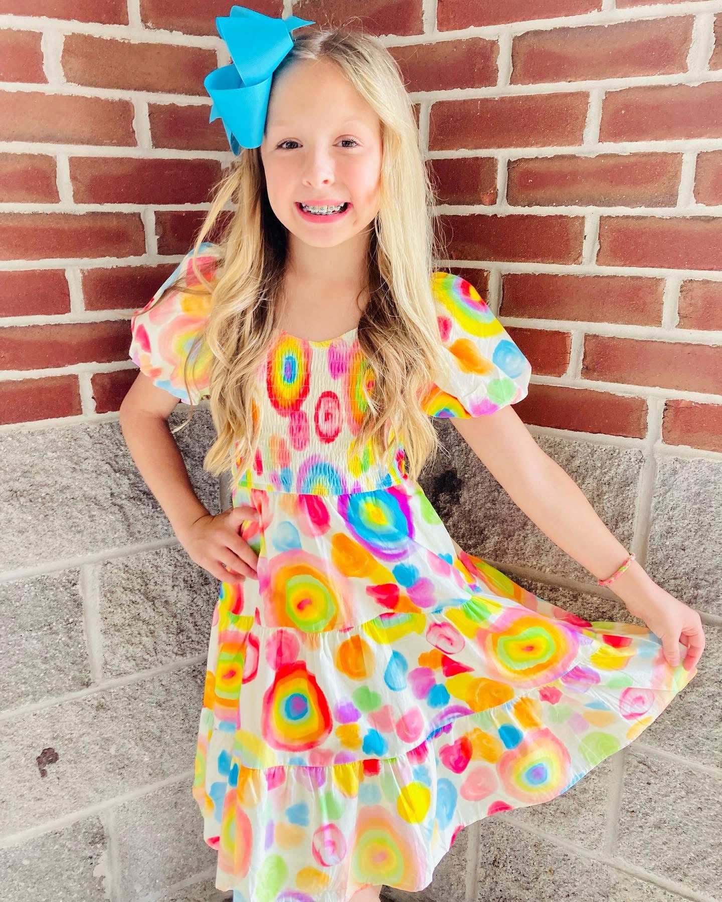 Discover the Girls Lollipop Dress - a perfect blend of adorable design, comfortable fit, and vibrant colors. Your little girl will shine in this enchanting outfit!