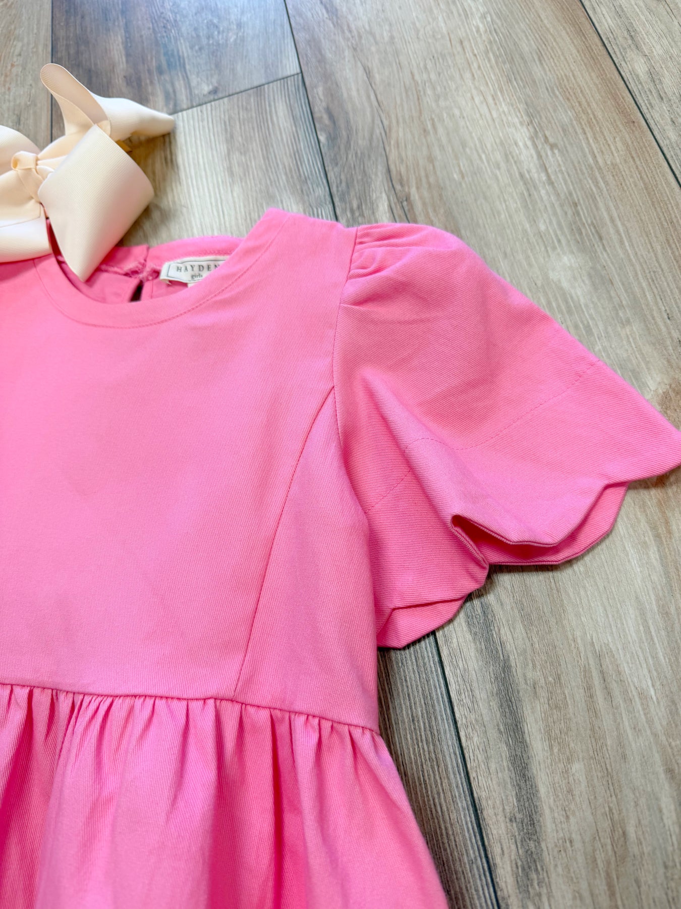 Adorn your little one in style with this adorable pink denim dress. Perfect for any occasion, this dress combines comfort and fashion effortlessly. Add a touch of charm to her wardrobe today!