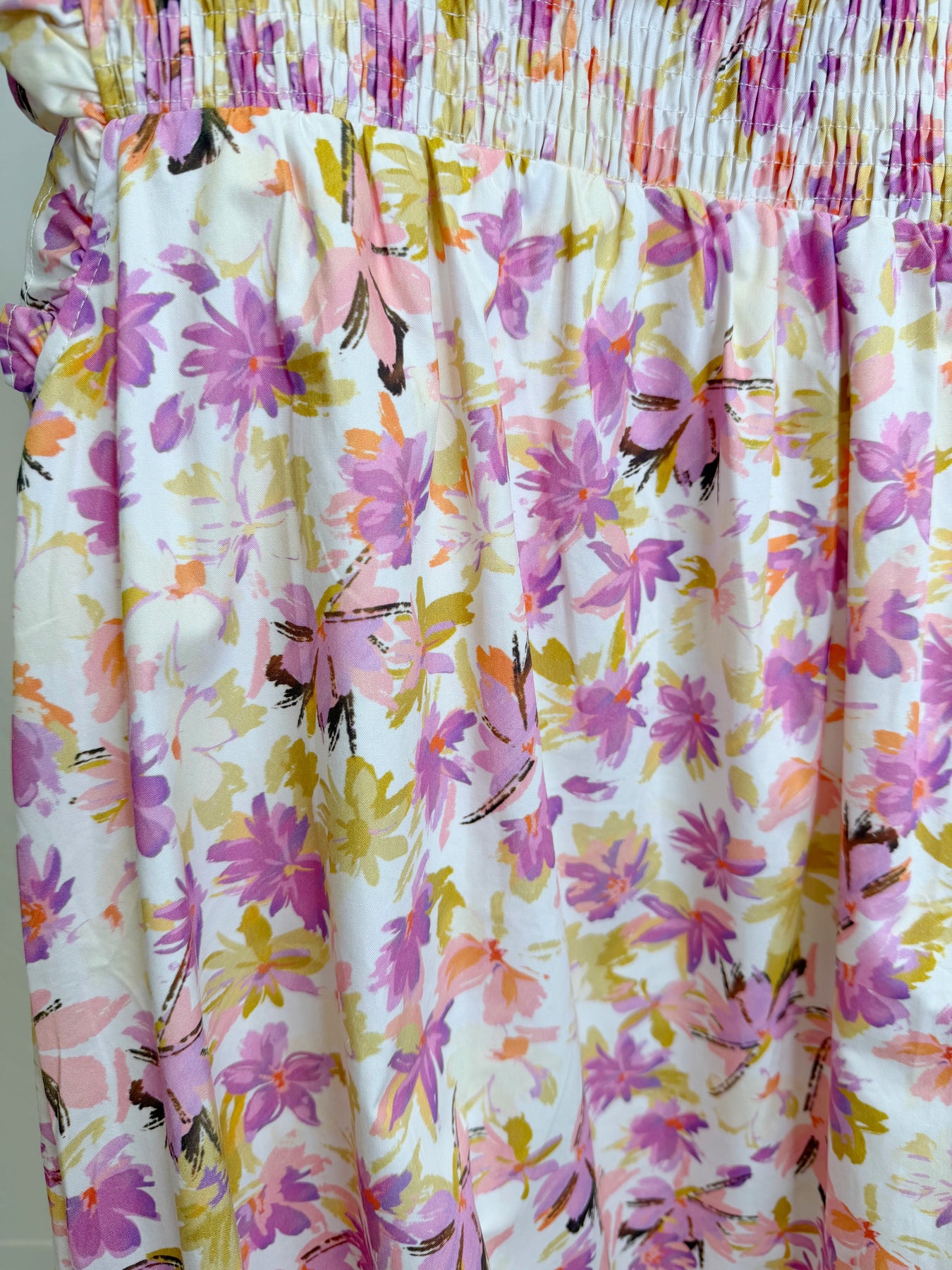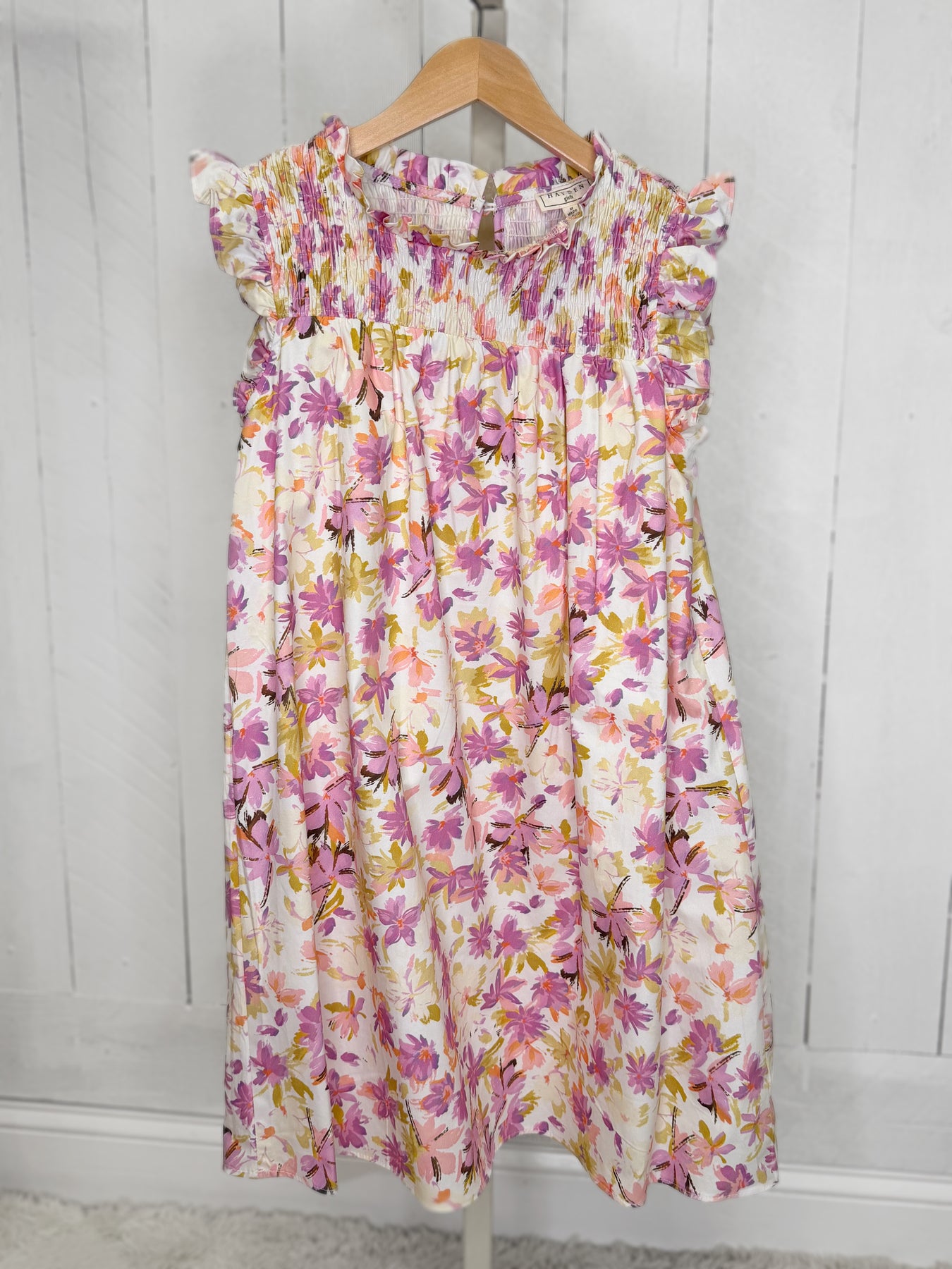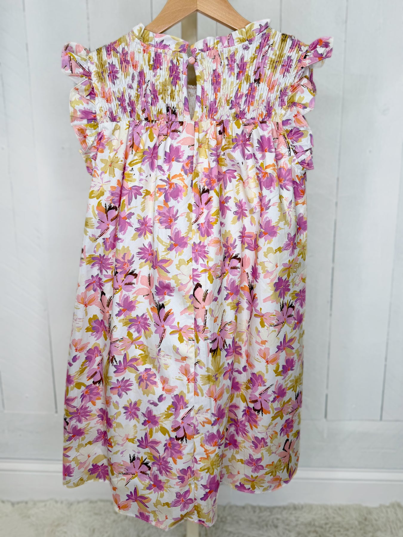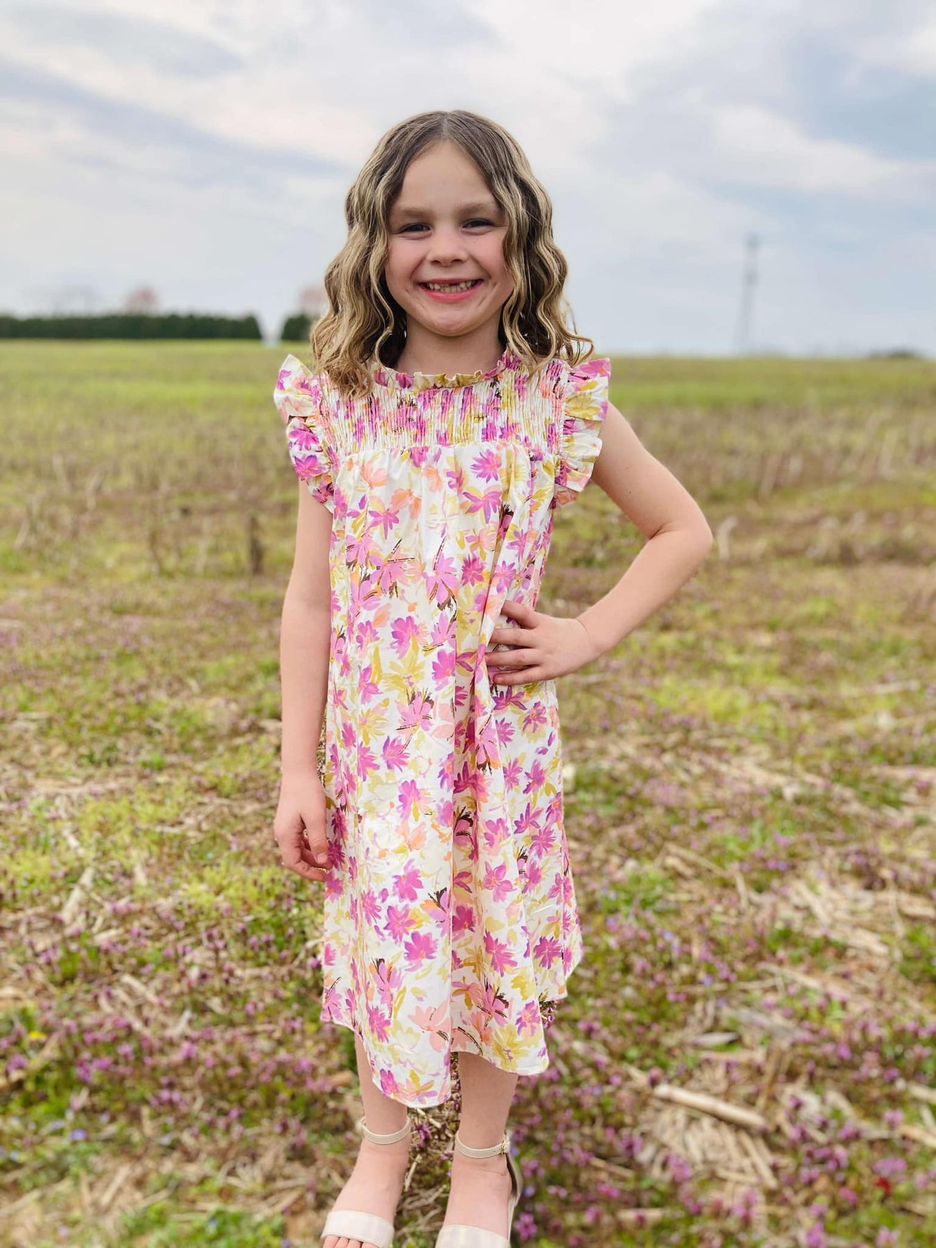 Elevate your little girl's wardrobe with this vibrant purple and green floral dress. Combining a stylish floral design with a comfortable fit, this dress is perfect for any occasion.