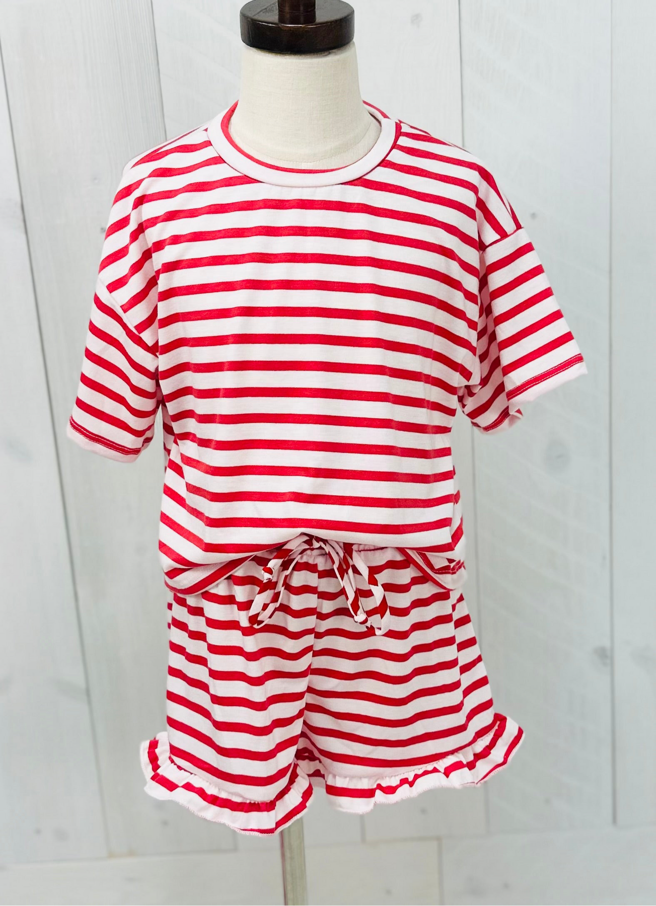 Introducing our Good Girl Kids Wear Set, featuring a trendy red striped crop top and matching ruffle shorts. Made with high quality materials and designed with style in mind, this set will keep your little one looking cute and feeling comfortable. Perfect for any occasion, add it to your child's wardrobe today!