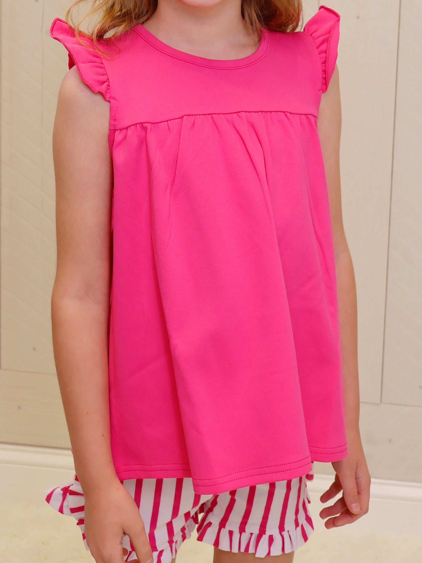 This Millie Jay hot pink short set offers a stylish and practical choice for any young fashionista. With its charming short design and vibrant pink color, this set is perfect for any summer occasion. Made with comfort and style in mind, this set is a must-have addition to any wardrobe.