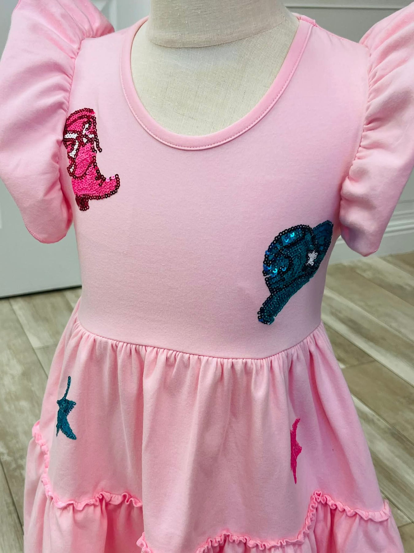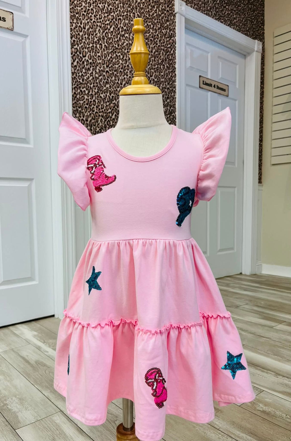 The Girl’s Cowgirl Sequin Dress combines a classic cowgirl aesthetic with modern design elements. Featuring elegant sequin detailing, it enhances visual appeal while ensuring comfort for all-day wear. Its robust construction supports durability, making it suitable for various occasions, from casual outings to themed events.