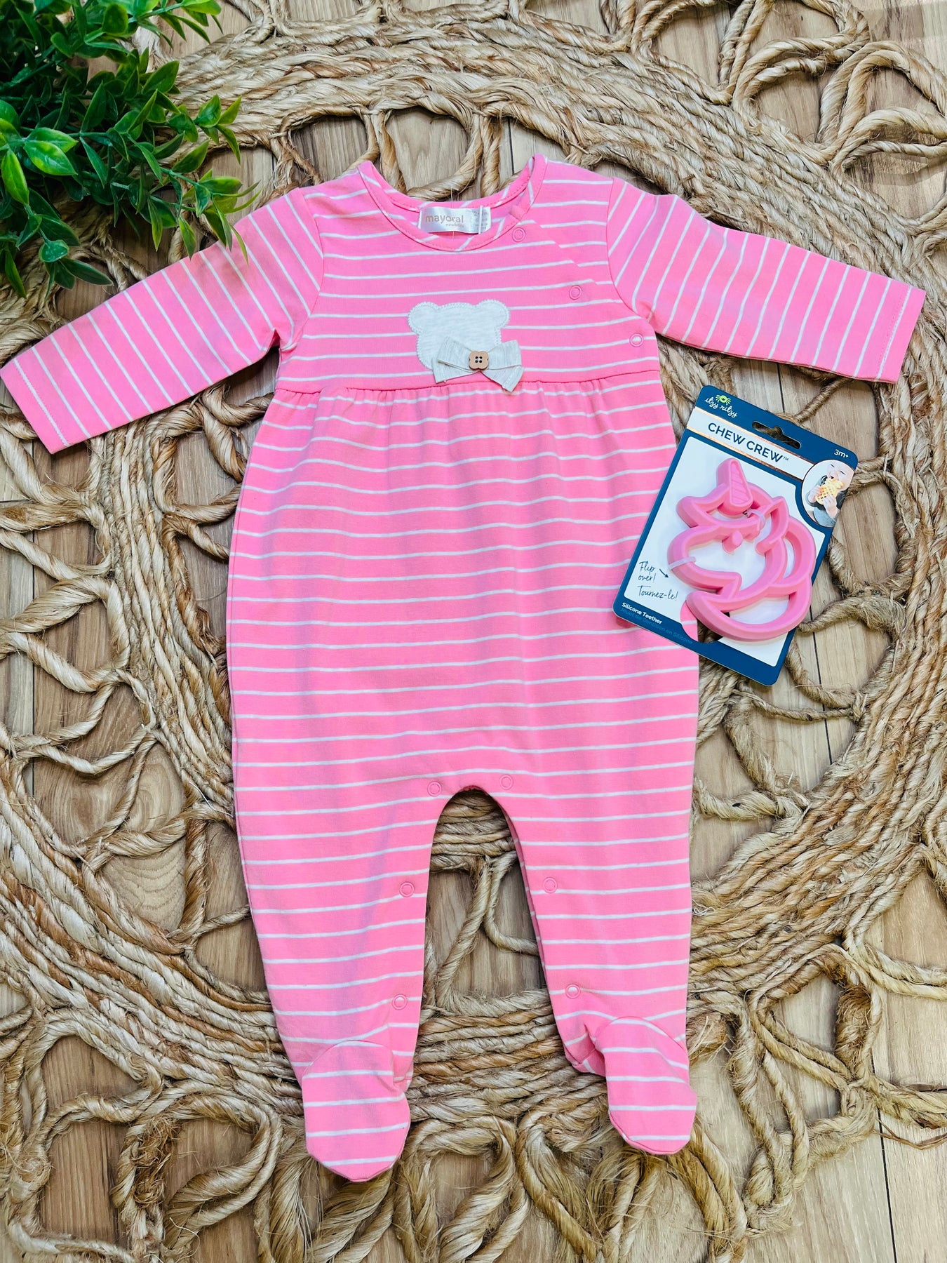 The Mayoral Baby Pink And White Bear Sleeper is designed with soft, comfortable material for your little one's peaceful sleep. Its adorable bear design adds a cute touch. Made with high-quality materials, it provides a safe and cozy rest environment. Perfect for newborns, this sleeper is a must-have for any nursery.